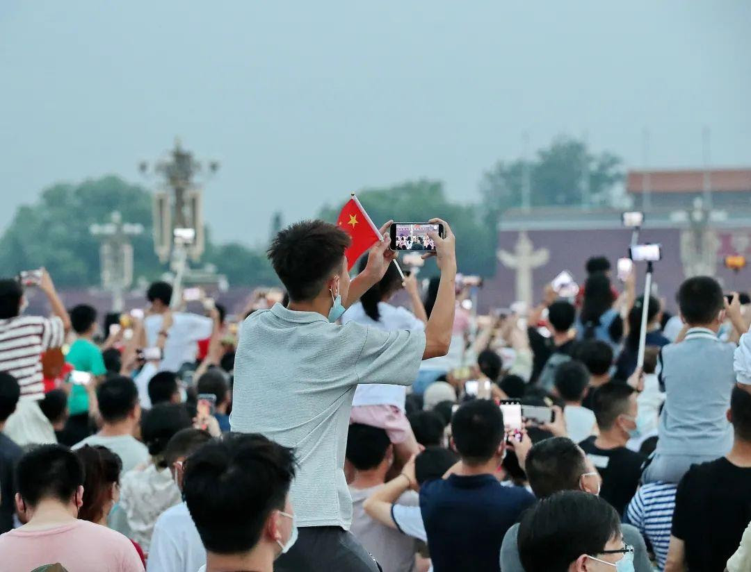 Bendara nasional Tiongkok dikibarkan serentak dengan matahari yang terbit