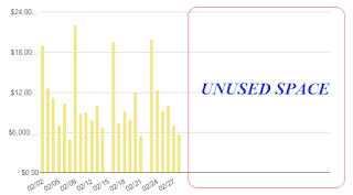For some reason I can't get my column bars to expand across the entire chart area. Notice in the screenshot below that the columns only occupy half the space of the chart area. As more data points (and columns) are added, the columns simply get squeezed together, rather than expand across the entire width of the chart area. My chart options are shown below. How do I format the chart so that the entire chart area is used?
