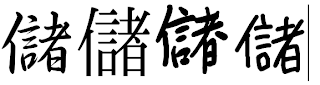 | Re: Some 200 kanji that need to be corrected | ospalh | 23/05/14 05:04 | I am not sure which way these images are to be read. Are they the wrong versions? How they should look? And what are you using as standard what the “right” way should be? I only looked at the first three in your list. What i have seen with those: For 倦 and 僅, the version from your image is there as the x-Jinmei.svg variant. For 儲, it appears that the 17-stroke version with a plain "者" at the right, without the extra dot (14 in the image) is a variant in some of the random fonts i have lying around: |