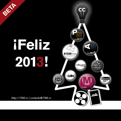 Tras un año y medio desde el inicio de este proyecto, 15M.cc ha cambiado mucho y ha generado muchísimas líneas de trabajo y activismo distintas. Por eso, aunque hace un año os felicitamos 2012 con un árbol más "pelado" en el que aparecían tan solo tres obras (el libro, el documental y una página web), este año venimos cargados de todas las iniciativas y plataformas que ya forman parte del ADN de este 15M.cc, totalmente VUESTRO :-)