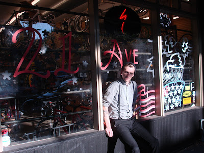 [21st Avenue Bicycles] Sean's window soars with the eagles