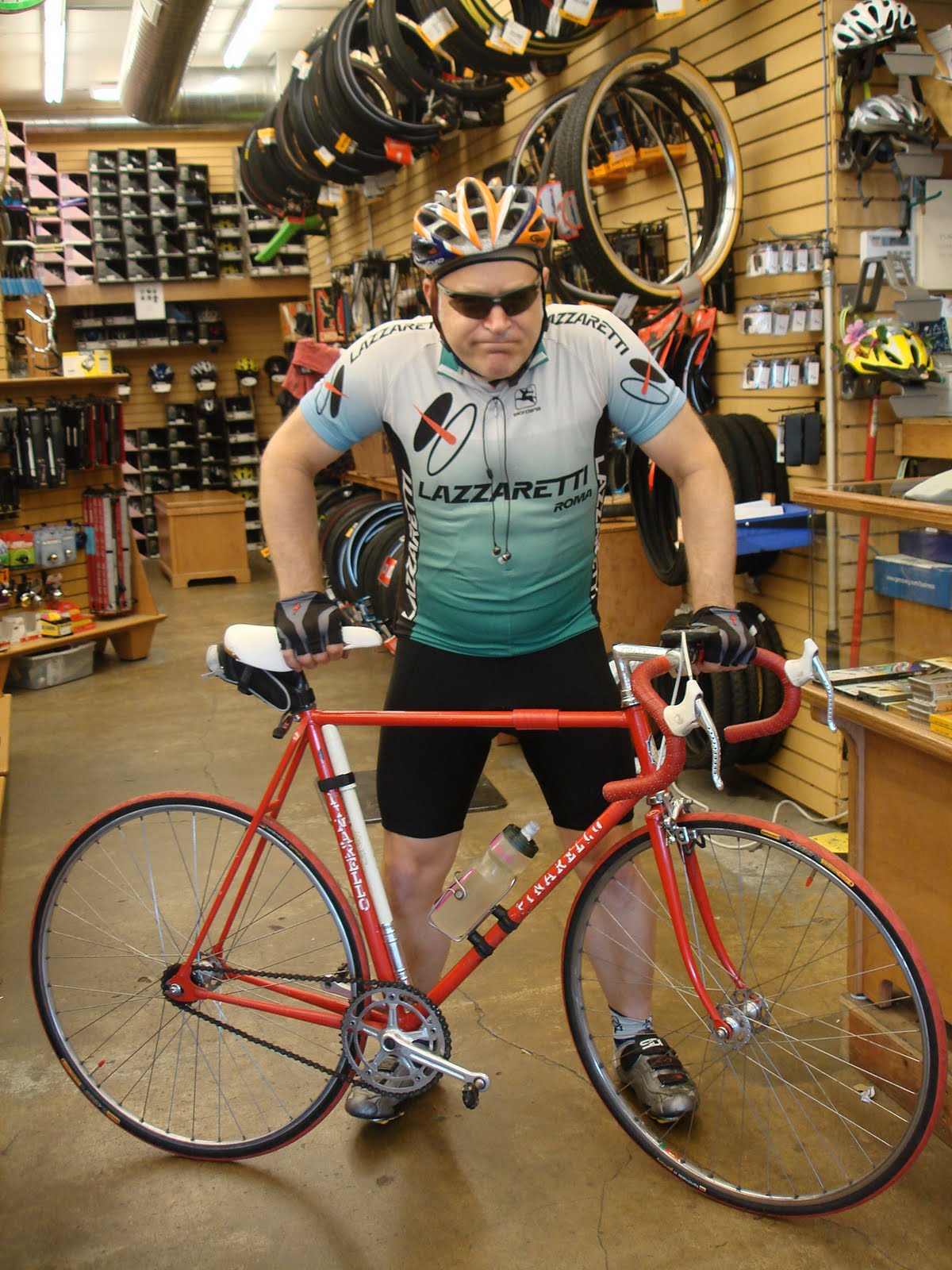 One of our regulars, Paul Golden, came in with his Pinarello today. He said he got it before it was cool. It's always been cool, Paul.