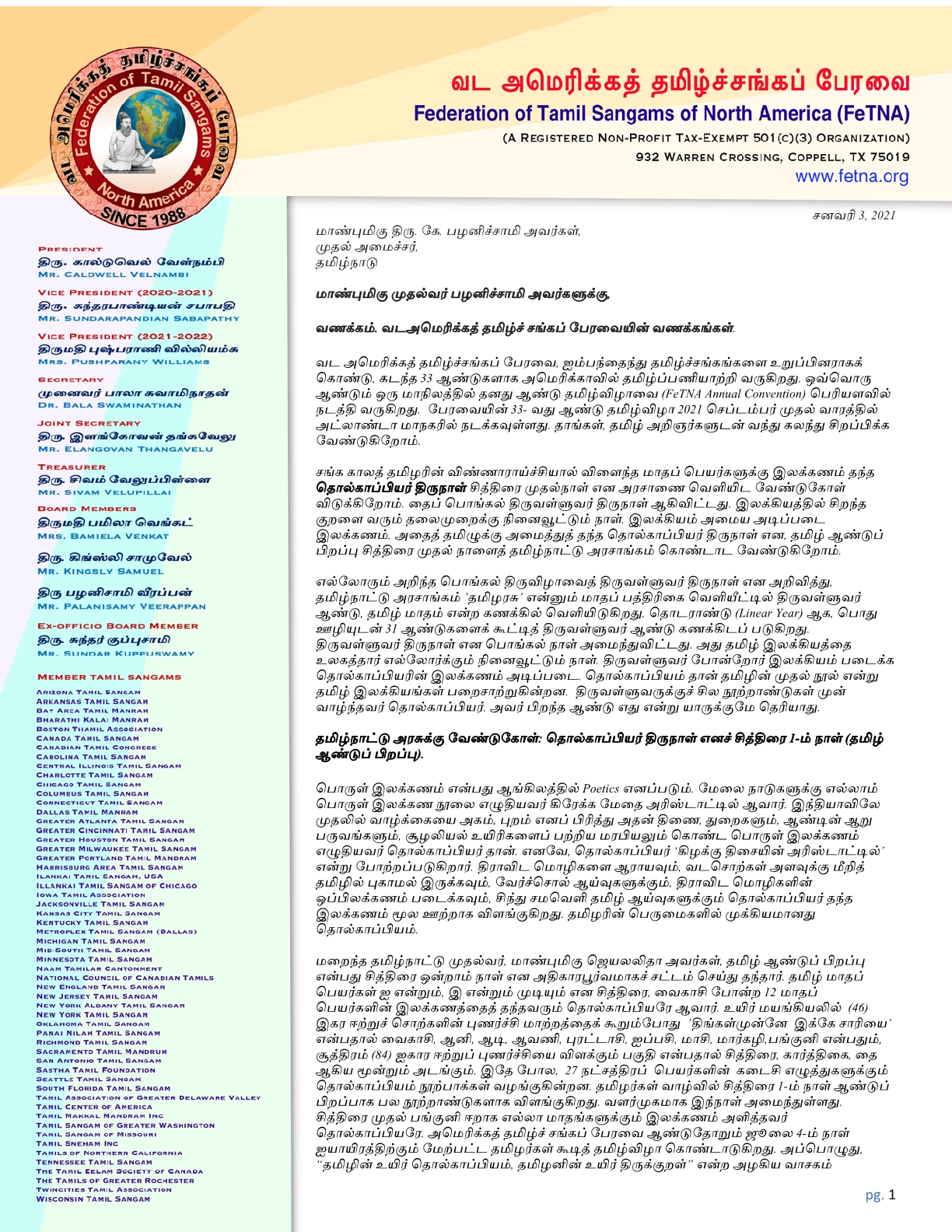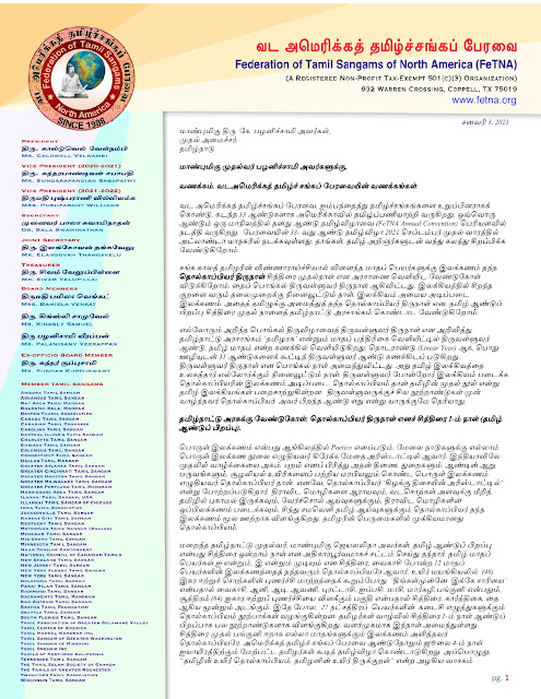 பிப்ரவரி 21, 2021 அன்று அமெரிக்கக் கூட்டுத் தமிழ்ச் சங்கப் பேரவை (FeTNA)