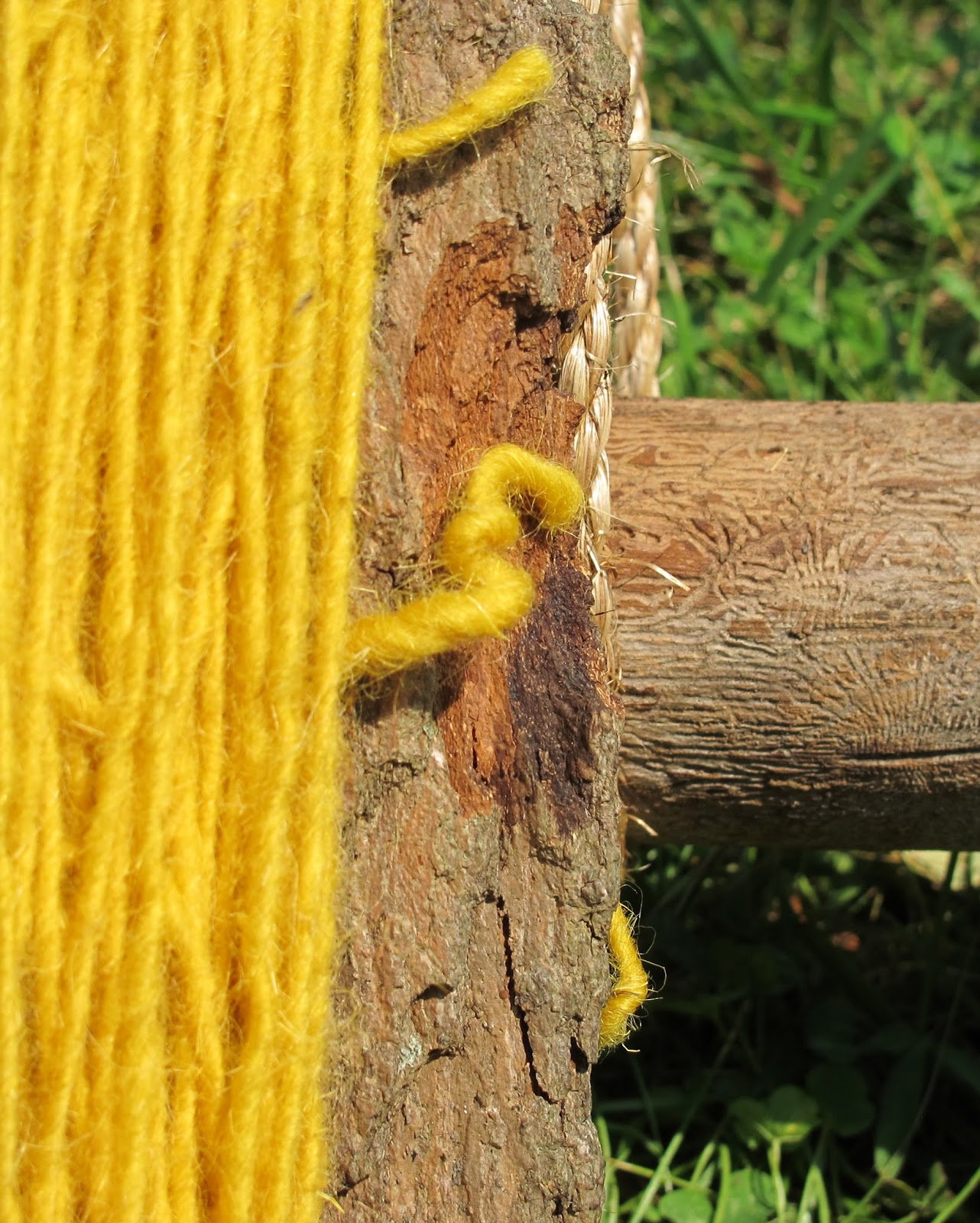| Working my handmade bark waft wrapped in Grandma's yarn that comes from her loom days. |