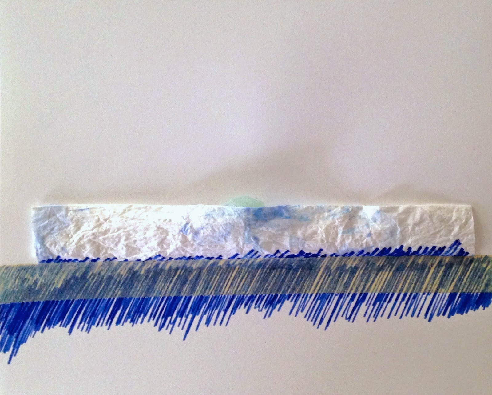 Alicudi III, 2013, 8" x 10" Water Color, Tape, Marker, Sea Glass, Tissue $200 ($100)