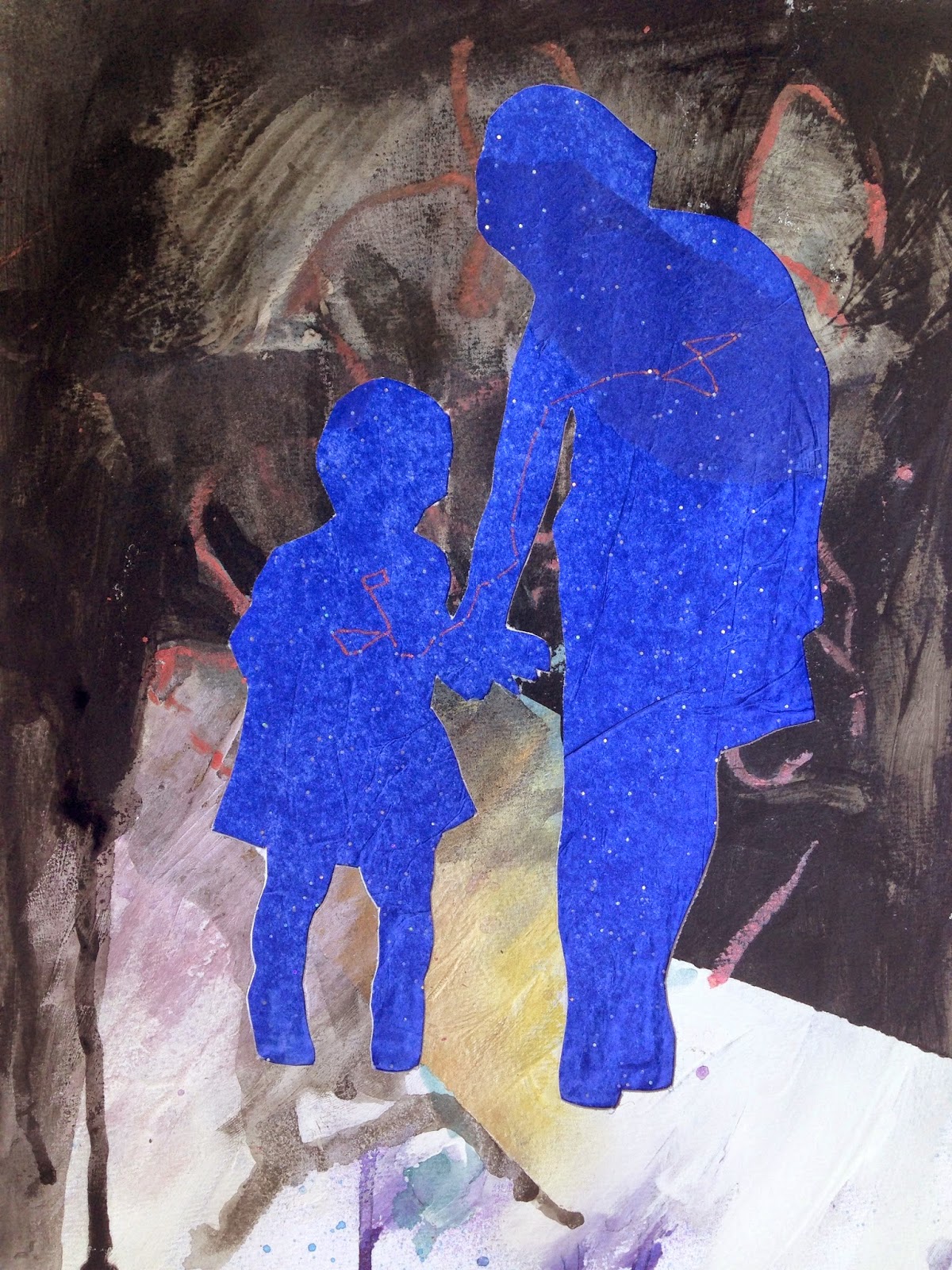 Star Sisters, 2014, 9" x 12", Acrylic, Oil, Ink, Tissue Paper, Glitter $400 ($200)