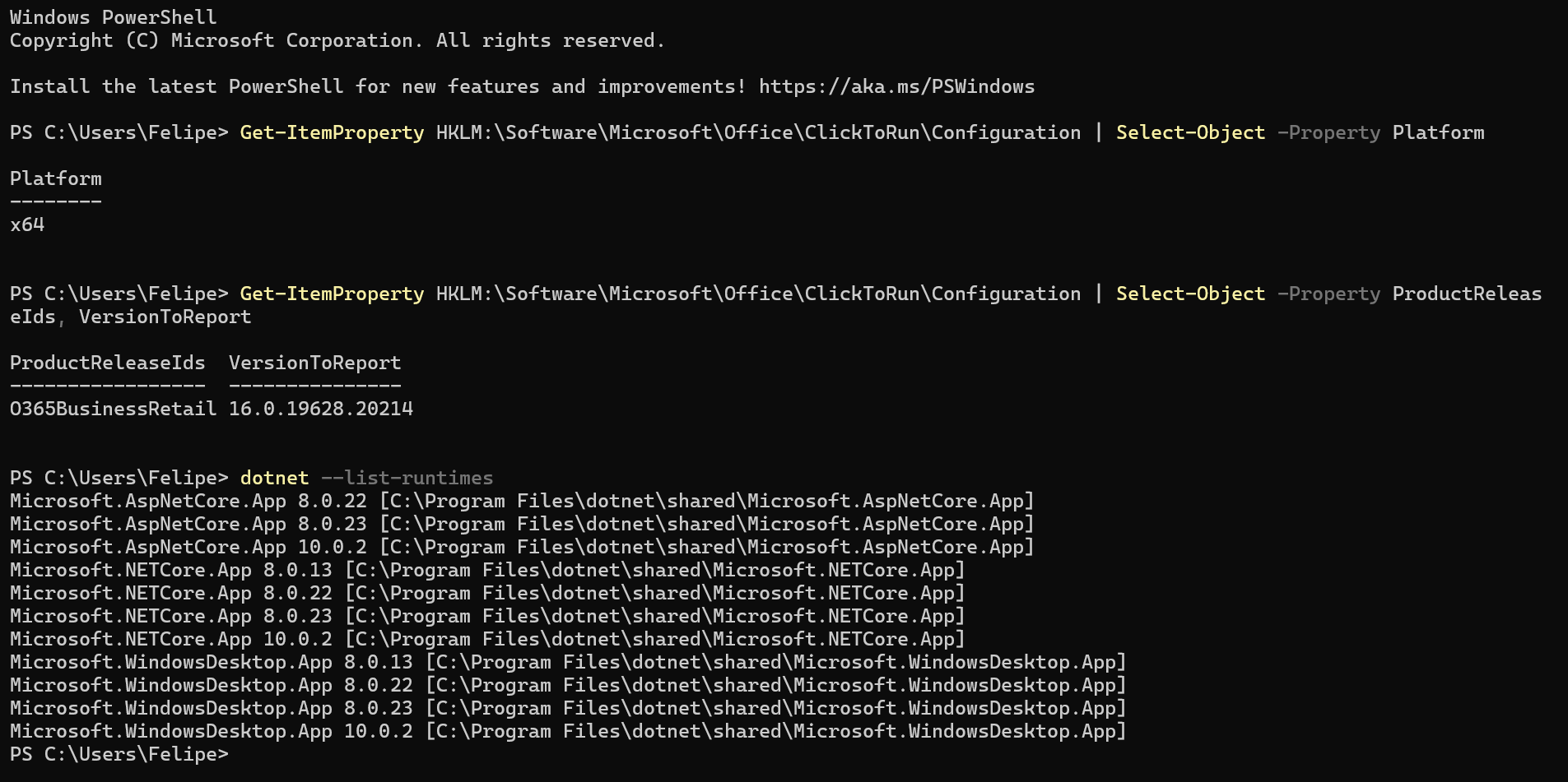 dotnet –-list-runtimes