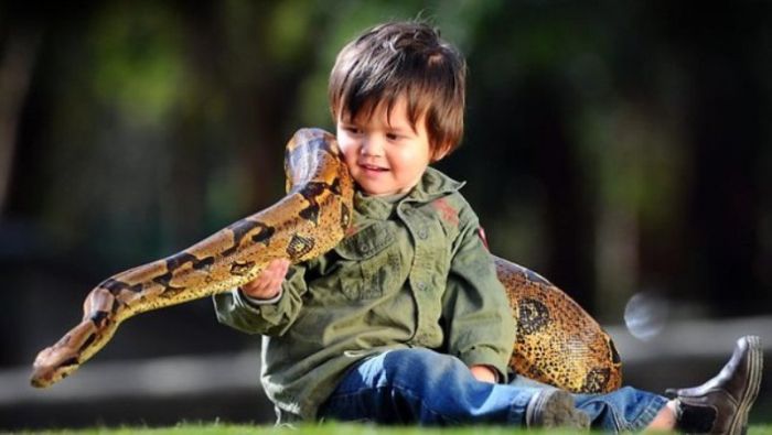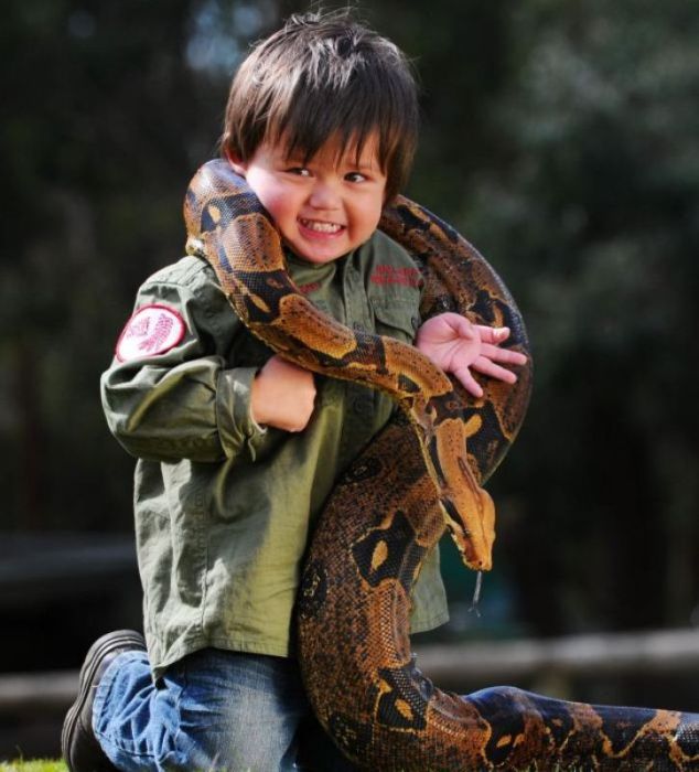 In Australia, 2-year-old boy Charlie is good friend of boa constrictor Pablo. Charlie comes from three generations of carers who own and the Ballarat Wildlife in Victoria,