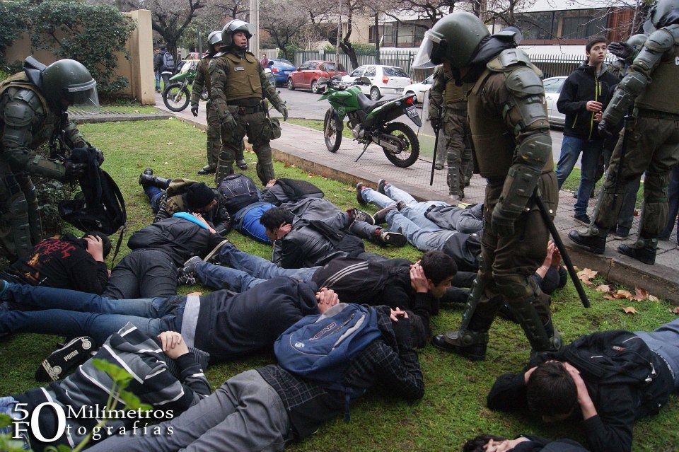 Desde el año pasado, venimos observando un patrón de violencia sexual policial en las protestas estudiantiles. Hemos constatado que, durante el periodo de detención, se les obliga a desnudarse completamente, incluso a desprenderse de su ropa interior. También nos han llegado casos en los que los carabineros han golpeado en la vagina a las estudiantes, cuyas edades rondan los 14 y 15 años. Y, en otros muchos casos, para disolver una manifestación o desalojarlas de una ocupación, les aprietan los senos. Y, además de está violencia física, hay otra de carácter verbal, muy frecuente hoy por hoy.