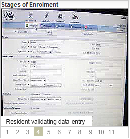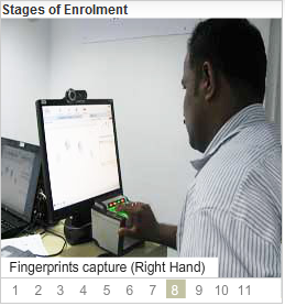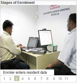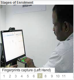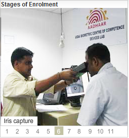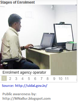 See the below photos from Left to Right --> which illustrates the stages of Aadhaar enrolment process
