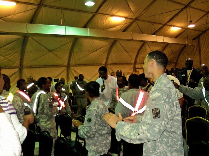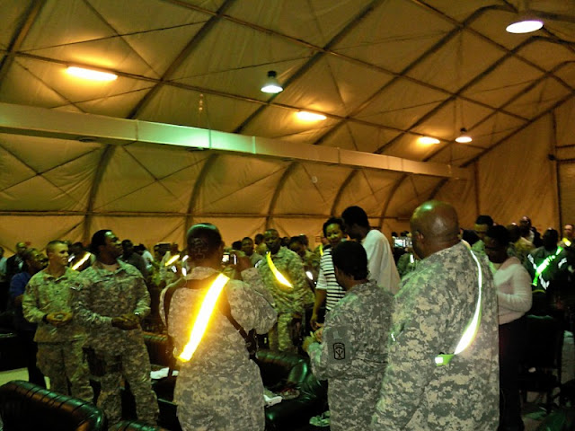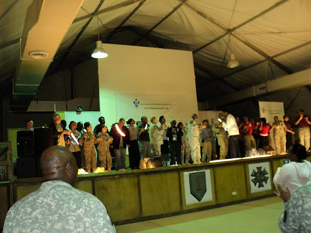 Because of internet issues it's very difficult to transmit video from Iraq. These brief clips cannot even begin to describe the emotions of this gospel performance held at Adder, Iraq on 12/27/2010.