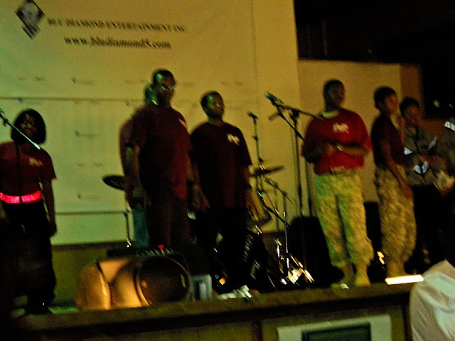 Another entertainment group called "THE GOSPELL BLUENOTES" was going to be performing that night and they were going to be joined by a group of soldiers who sing at church services here at Adder. I am embarrassed to say