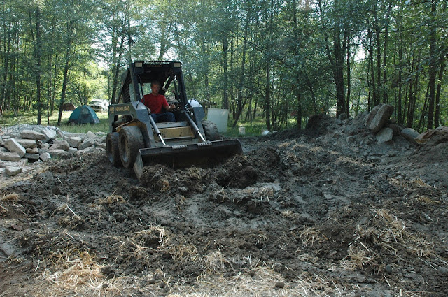 | After mixing a few hundred batches by foot, we graduated to bobcat cob ("Bobcob") |