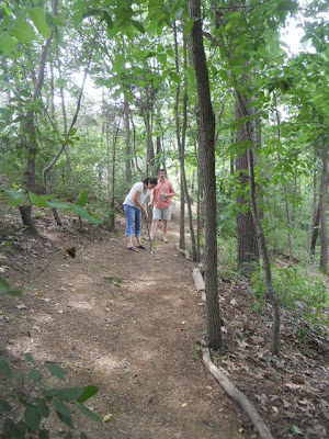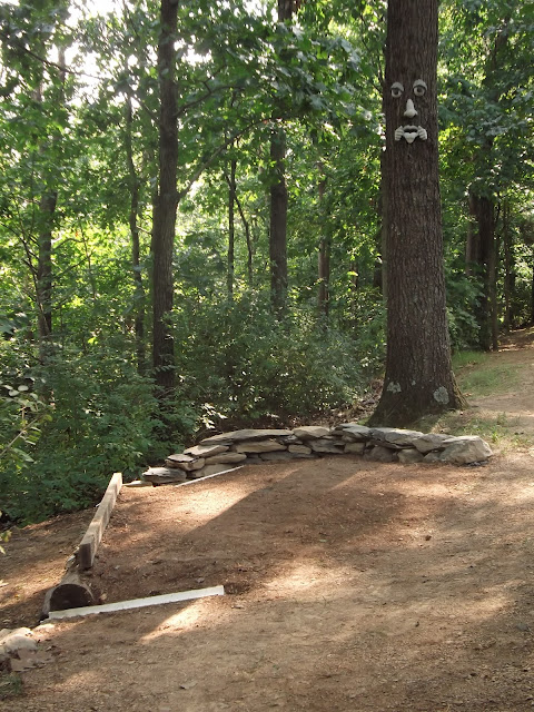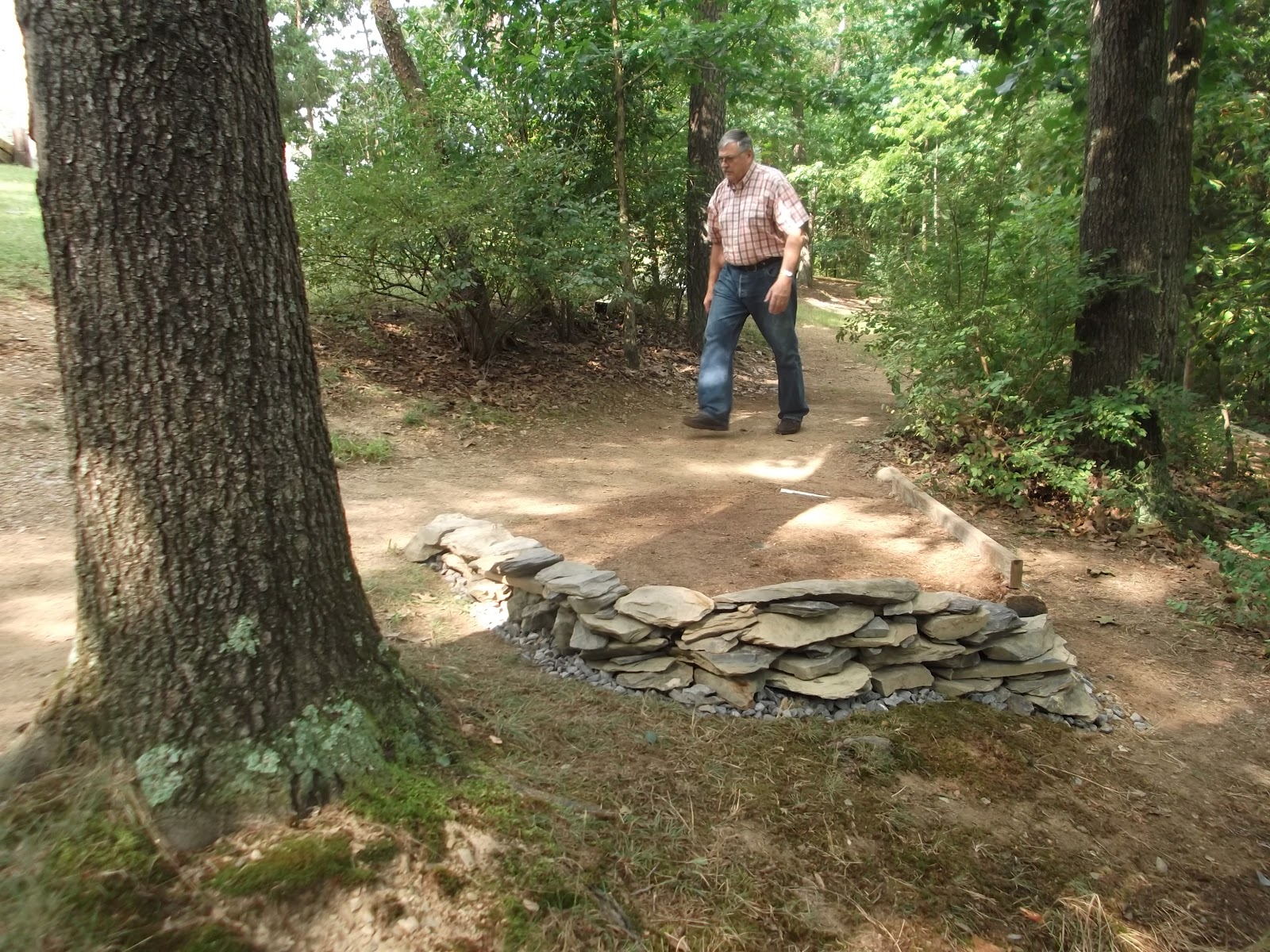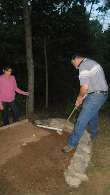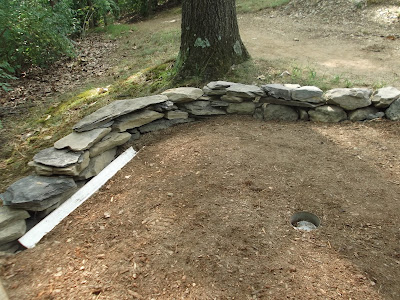 My dad built a 18-hole "Hillbilly" miniature golf course on their land several years ago and this year we had the idea of building an interesting addition of a stone and cob retaining wall on one of the holes.