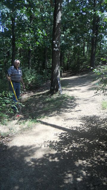 We surveyed the course and thought we'd go with the hole that had the least amount of water run-off moving through it (the whole course is on the side of a hill). That hole also happened to be the one with an older upgrade... "Pickle Face." Check out the tree on this hole!