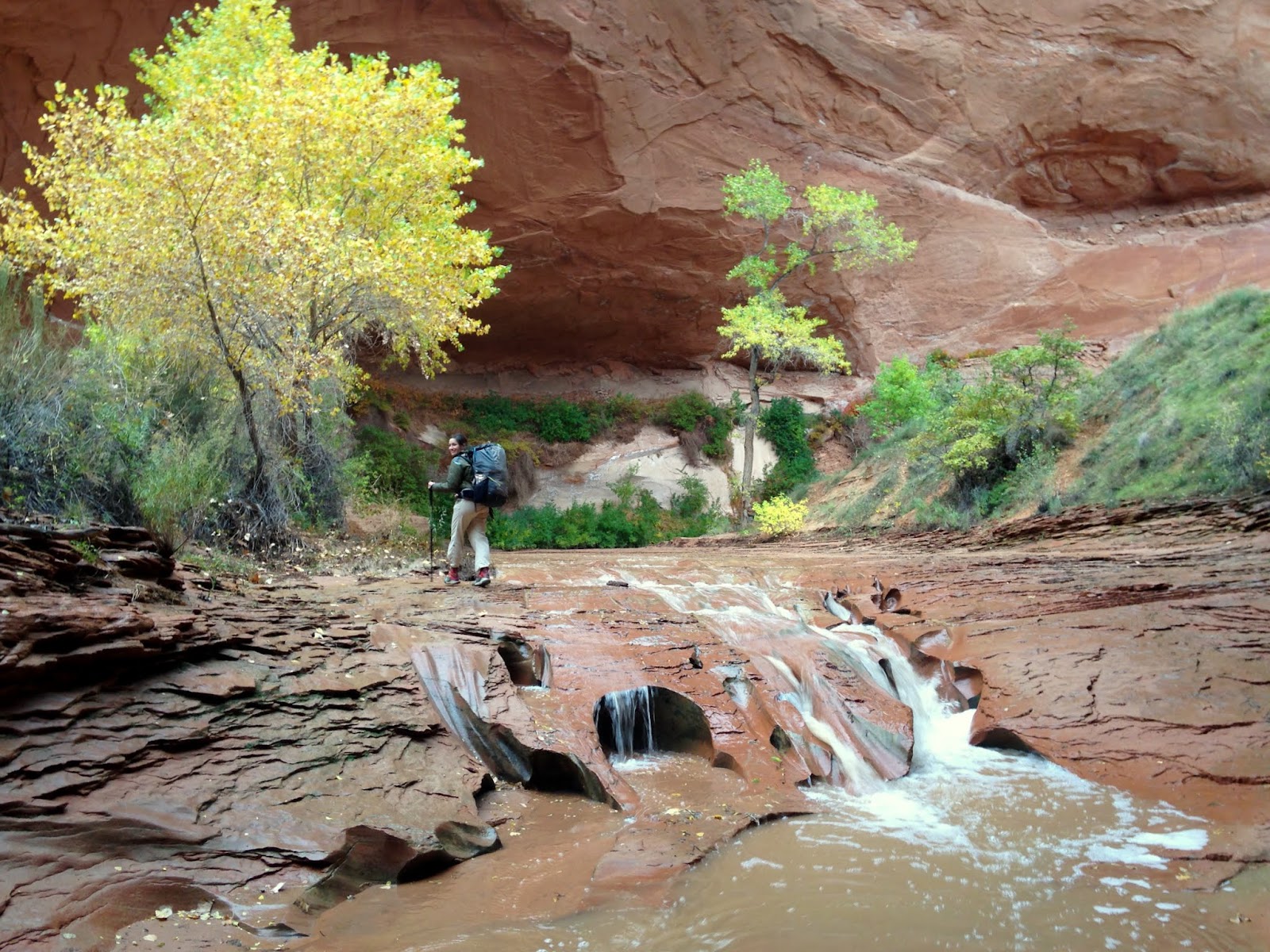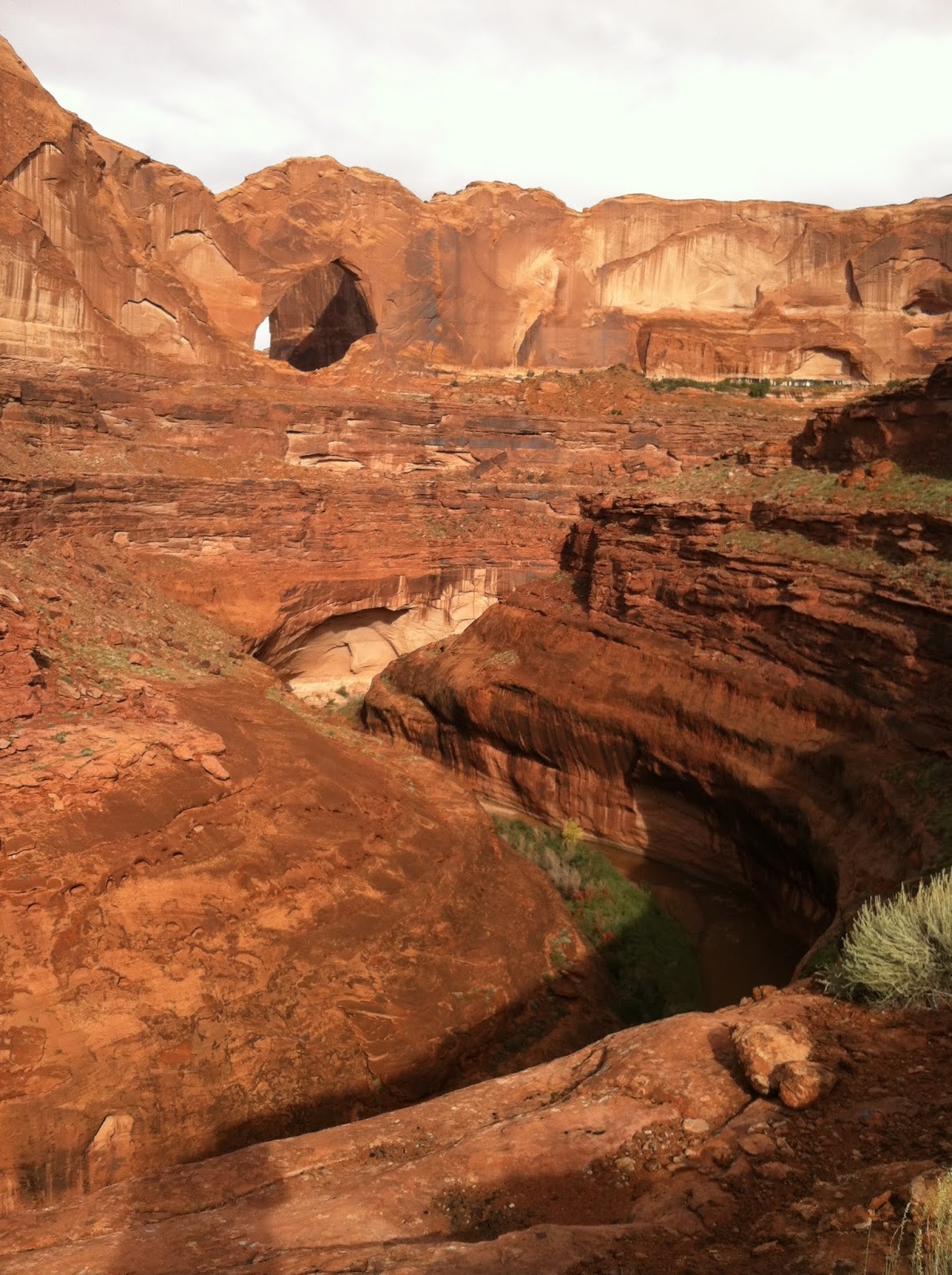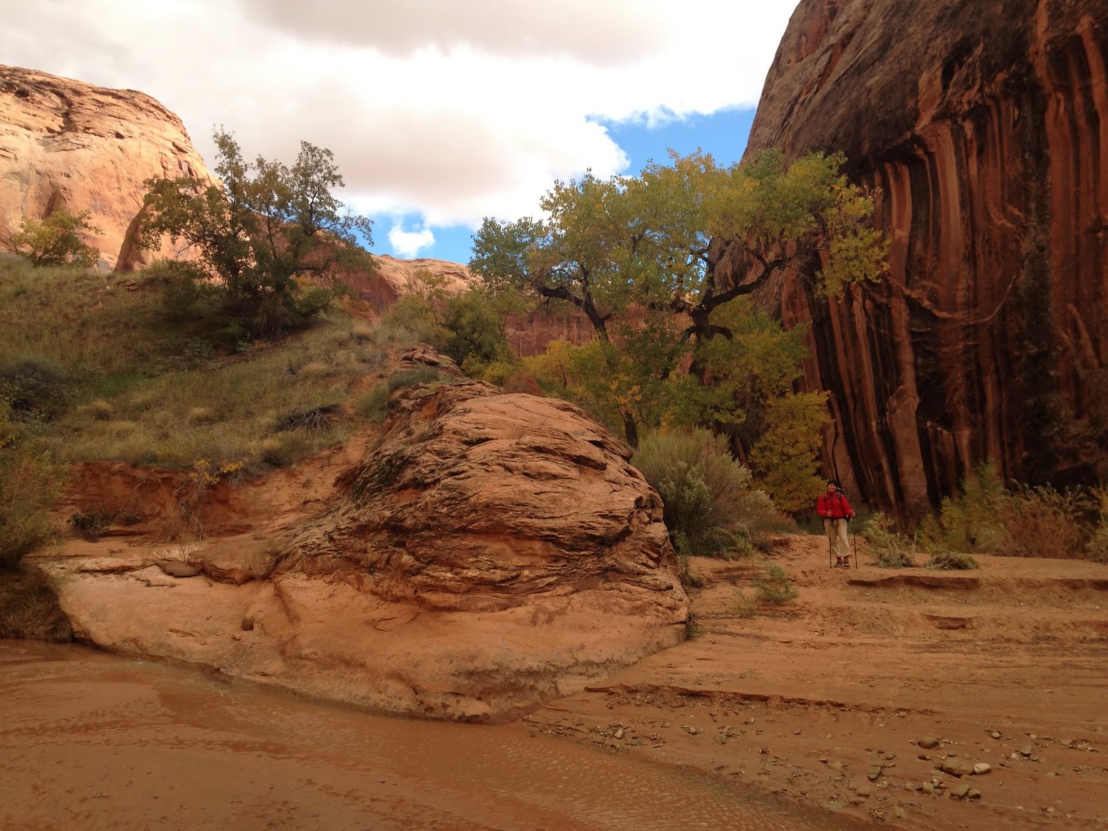 It's hard to show the beauty and specialness of this place in photos, but here are a few reasons that I felt like it was the best yet: 1) We were practically all alone out there. We saw other people there only on the main hike near the trailhead and still only a very few. 2) This place has it all! There were arches, natural bridges, petrified sand dunes, lush river areas, slot canyons, grottos, 150' overhangs, cliffs that offer expansive views, rock jumbles for scrambling over, and abundant fresh water springs 3) Logan has been coming here for over a decade and with all his hiking experience, it's still his favorite hike 4) There isn't a lot of identified trail - with the river always between floods - areas wash out and a lot of the time we were just finding our own way along the river. When we crossed the rock mesa, we were totally on our own - no trails, no tracks - just distant landmarks, a map, and a compass to help us find our way.
