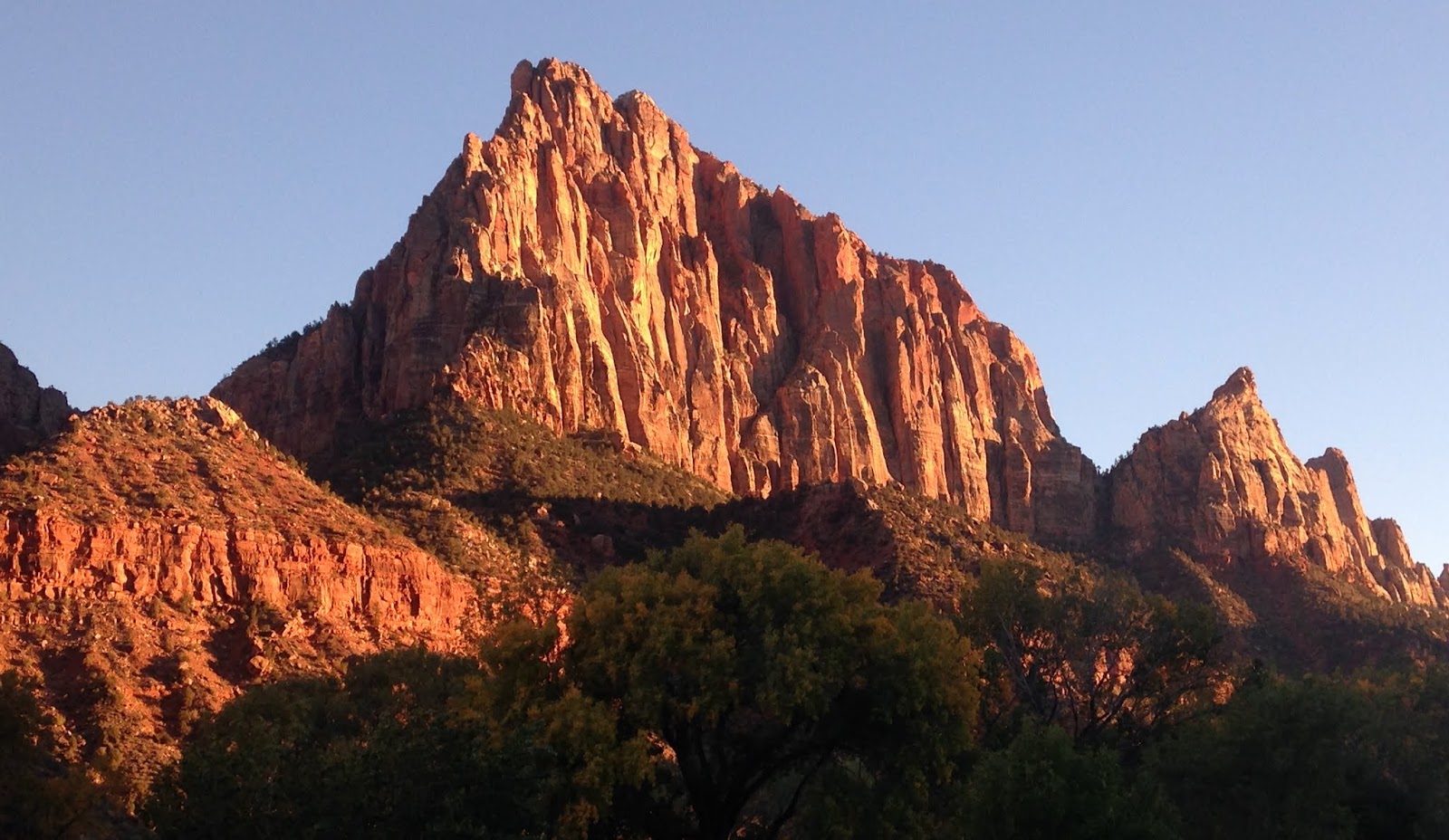 | Zion National Park is characterized by steep red cliffs. Much of the drive was near them, making them seem even larger. |