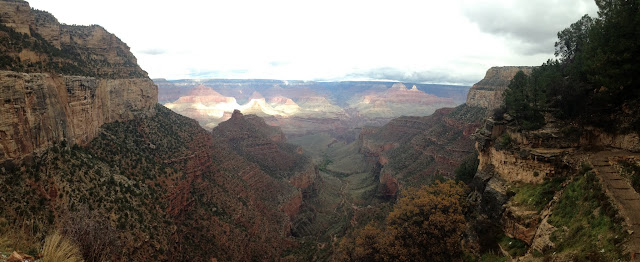 After our Escalante hike, we visited Zion National Park and then the Grand Canyon. They are two of the most popular and spectacular parks in the country, so they seemed worthy of a stop by :) We only spent about a half a day driving in Zion and did a little mini day hike along the river. At the Grand Canyon, we decided to do an overnight hike down to the bottom and then back up the next morning. We had perfect weather for fast hiking (mild and sunny on the way down and rainy and then snowy on the way up). It only took us 4 hours to go down and 4.5 to go up (unusually fast ascent, but hey - it was cold!) I was dreading the ascent - I imagined 9.5 miles of climbing a mountain with no reprieve, but it wasn't as bad as I thought - guess we are in better shape than we realized :)
