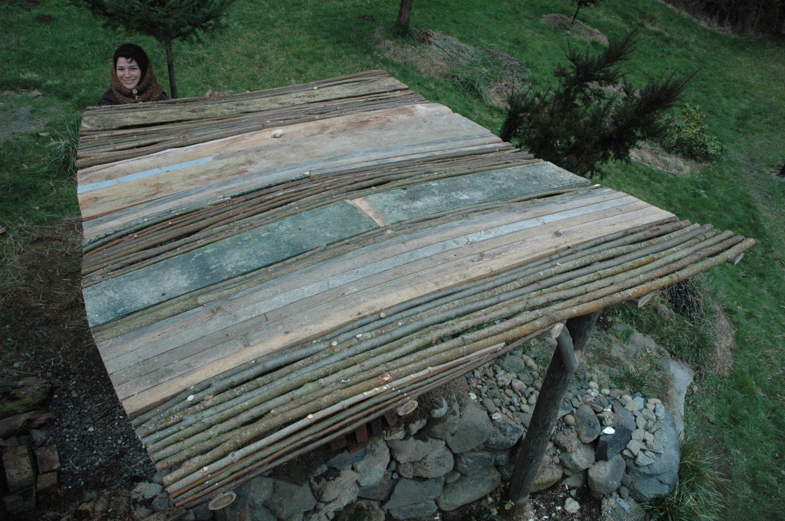 When I headed back to the states, I stopped in to stay with Greg and Logan for a week and we finished off a little shed roof for an earth oven he is going to rebuild. He is going to put a living roof on top.