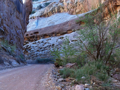 | Looking west to some petrified sand dunes in Capitol Reef National Park. Each park has different rock forms. |