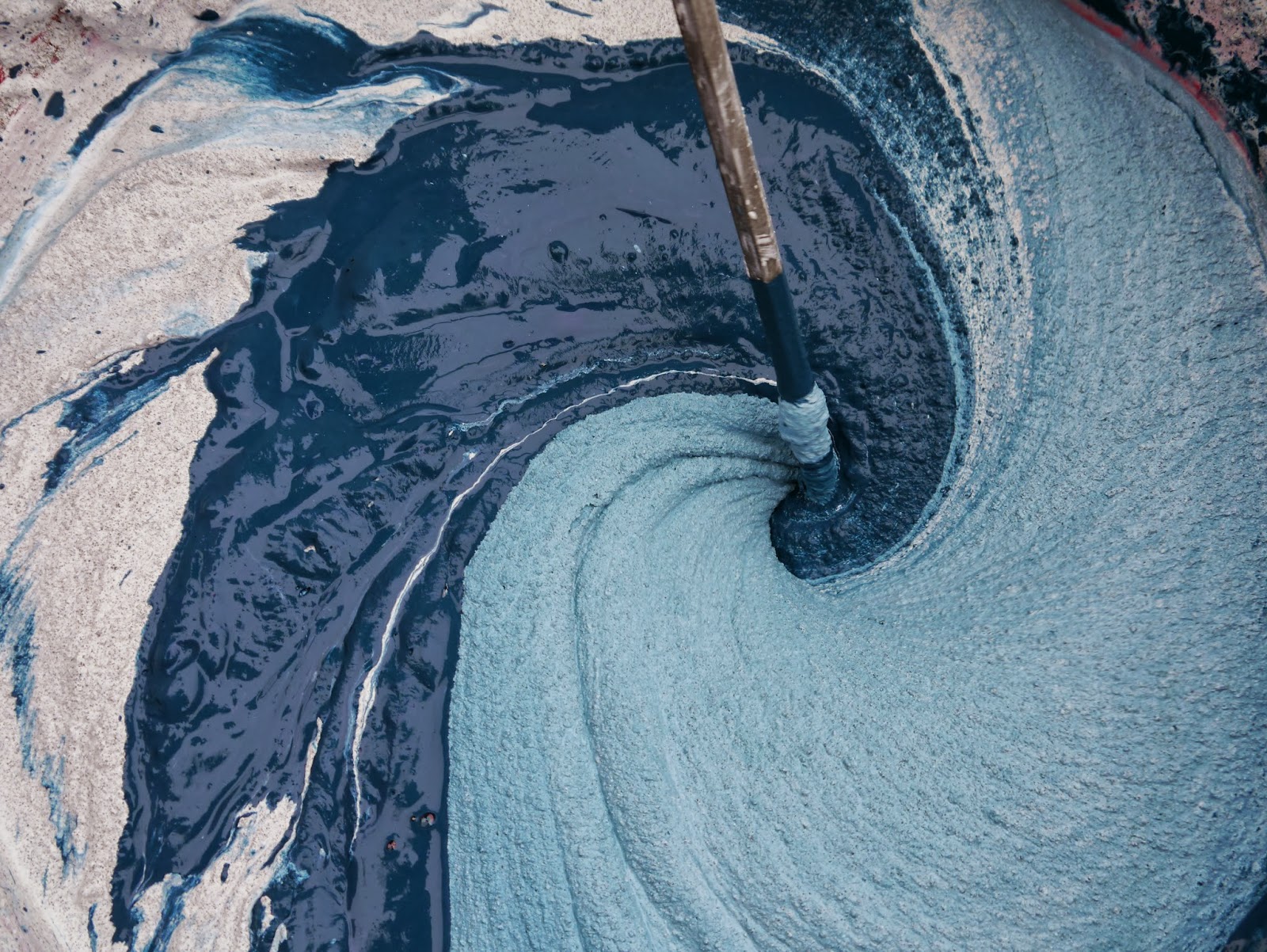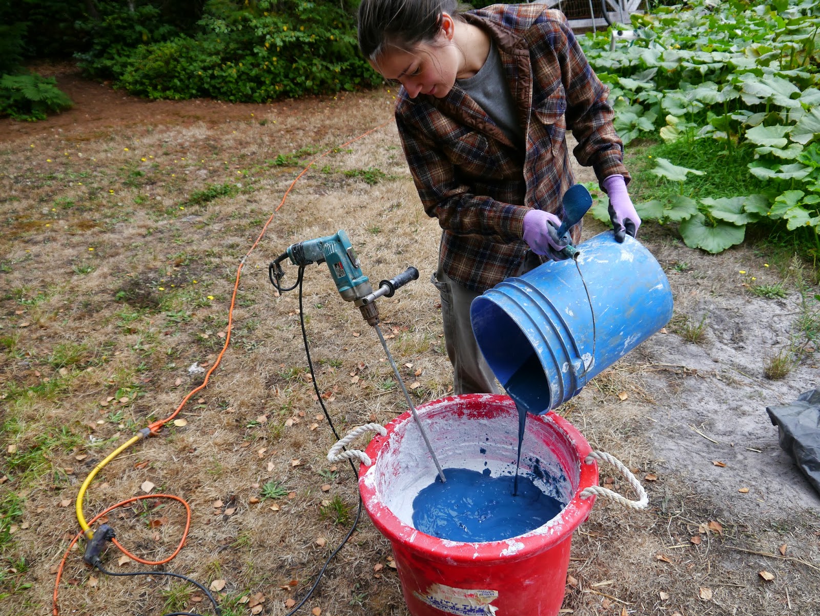 | Pouring the tadelakt pigment into the lime plaster. Such a pretty color! |