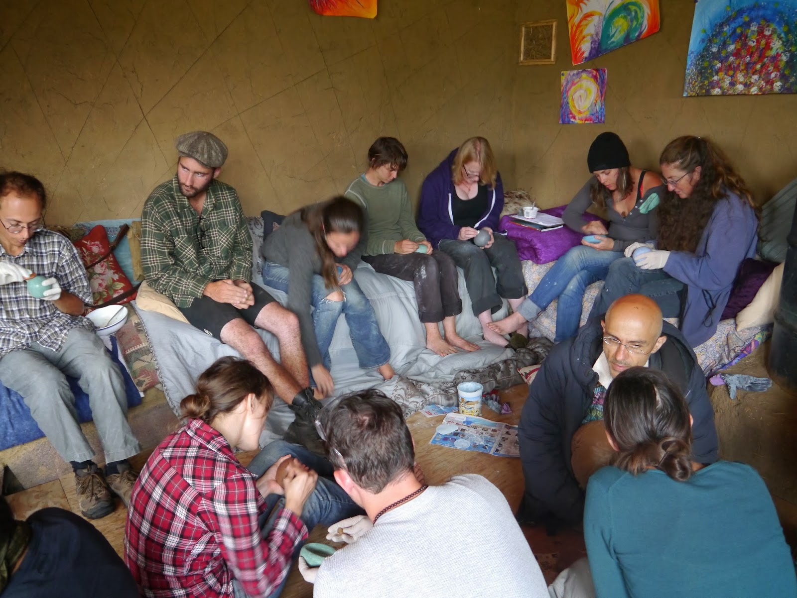 | Participants burnishing their tadelakt cobjects |