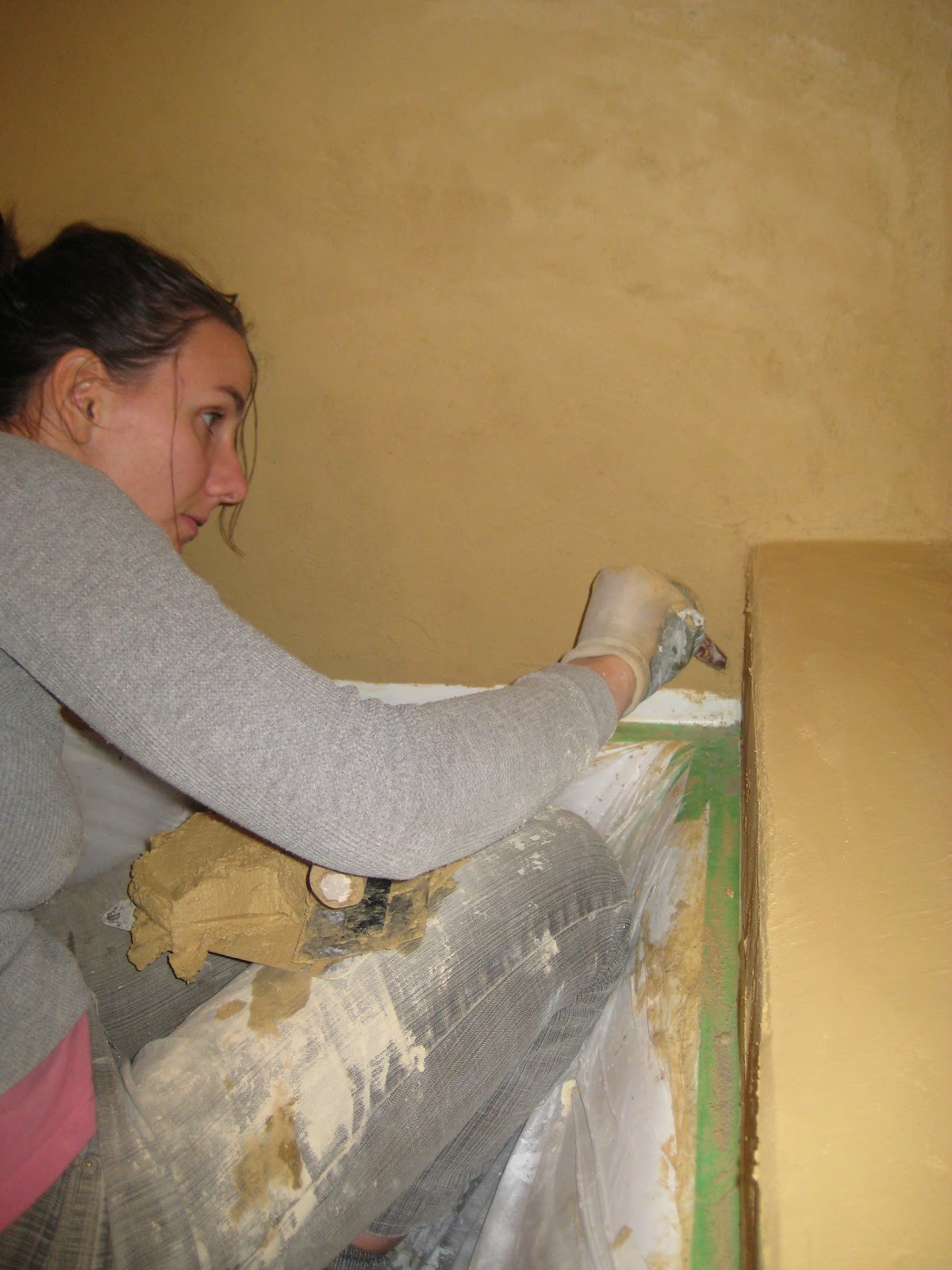 Applying the first layer of plaster (photo by Ayla Challenger) |