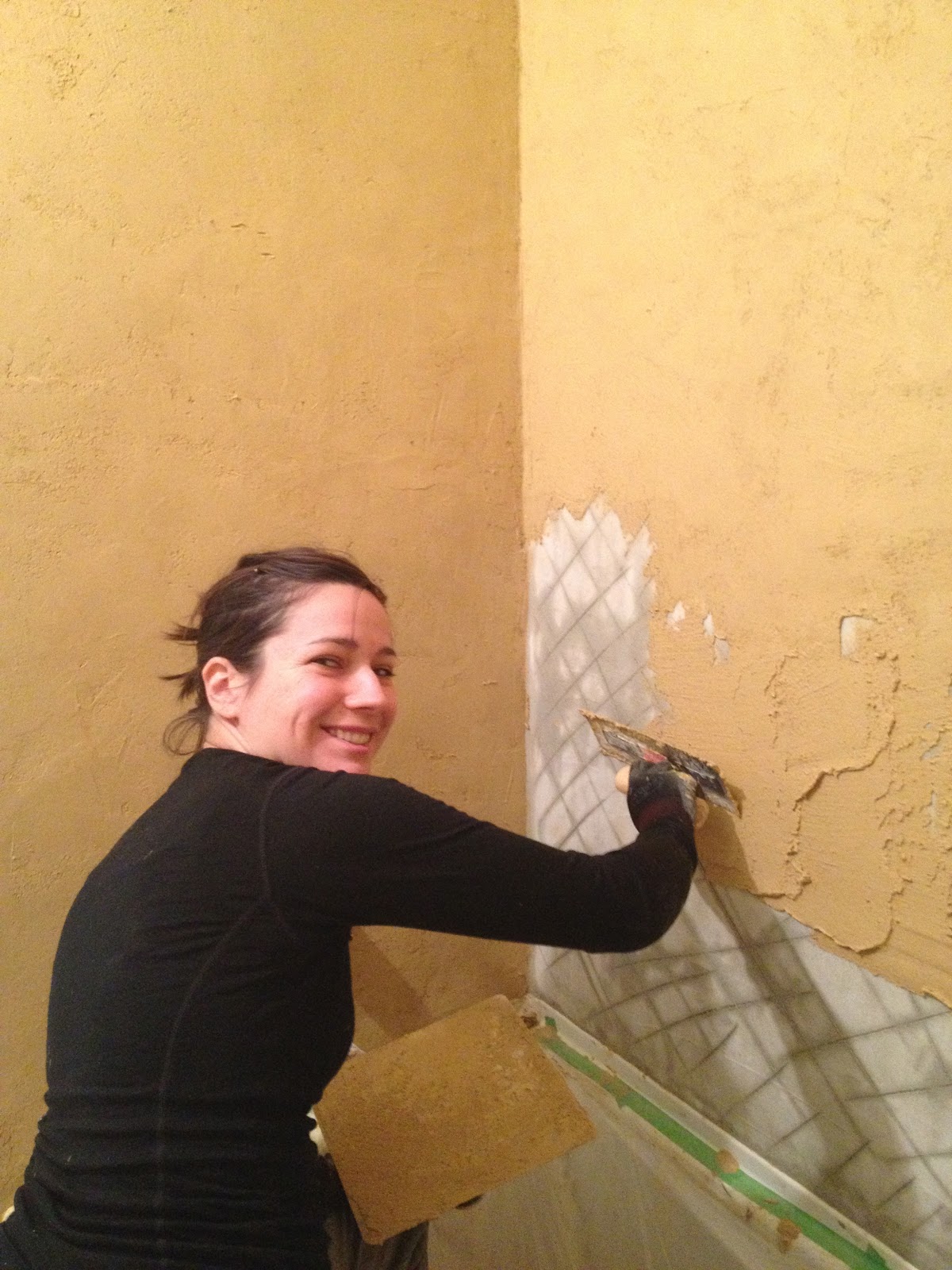 | Applying the first layer of plaster (photo by Ayla Challenger)