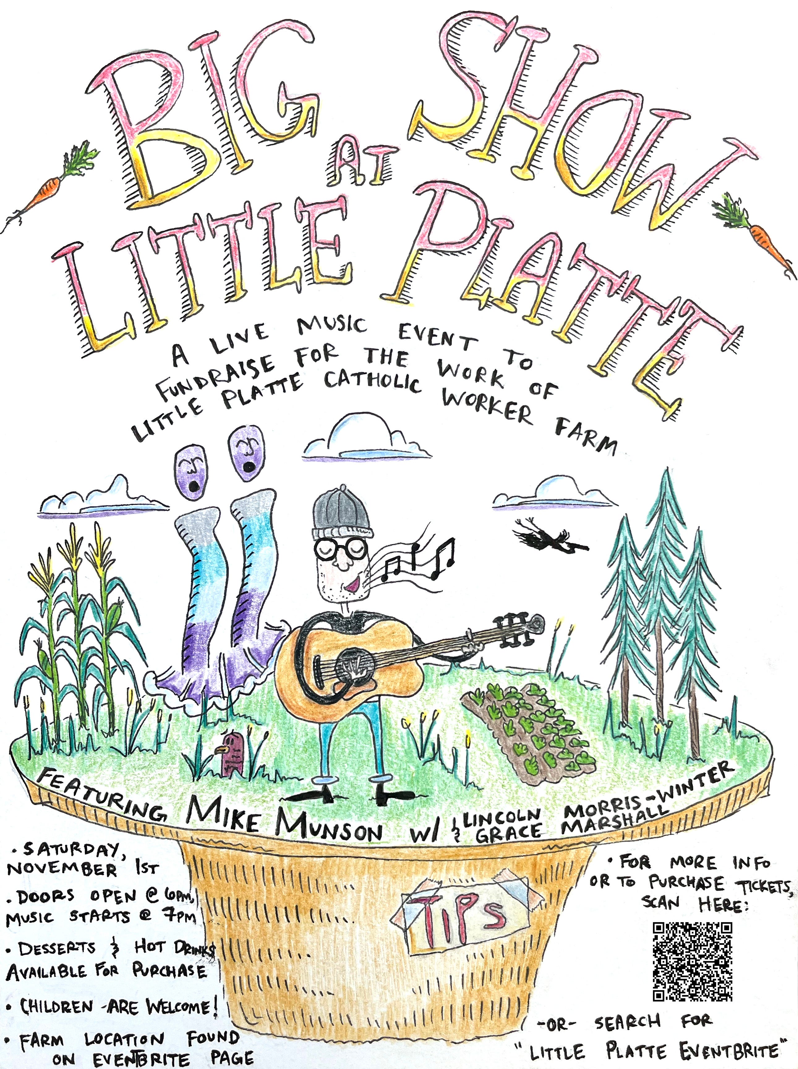 We are SO excited to announce our first (annual?) fundraising concert and farm celebration at Little Platte Catholic Worker Farm in Platteville, Wisconsin - Big Show at Little Platte!