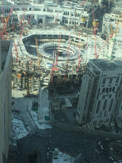 Aku dan hubby bergambo dalam bilik hotel kami. Yang sebelah atas kanan tulah pemandangan kaabah dari atas hotel kami. Aku suka berdiri tepi tingkap tu untuk menikmati pemangan indah tersebut. Cuma spoil sikit ada banyak construction menganggu pemandangan tapi aku bersyukur orang lain mungkin tak berpeluang menikmati pemandangan ini.