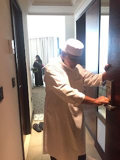 Sesuatu yang tidak kami rancang pada umrah ini adalah untuk bertukar hotel. Ustaz Anzaruddin telah memberitahu kami bahawa Hotel Baity 5 di Mekah adalah hotel yang 'biasa-biasa' sahaja, dan tidak sebaik hotel ketika Istanbul. Cuma kata Ustaz perjalanan dari Hotel Baity 5 ke Masjid adalah 120m. Jadi aku tidaklah mempunyai expectation tinggi terhadap hotel tersebut. Lagipun datang untuk beribadah, so aku tidaklah fussy sgt pun. Bila first time masuk Baity 5, memang agak terkejut, dengan bilik yg agak sempit memuatkan 4 katil dan tiada ruang untuk letak beg membuatkan aku rasa agak tidak selesa. Ok, aku mmmg bukan org yang fussy cuma bila tidur dgn beg besar di hujung kaki, aku rasa kurang selesa. Namun keajaiban Tanah Haram itu muncul lagi...