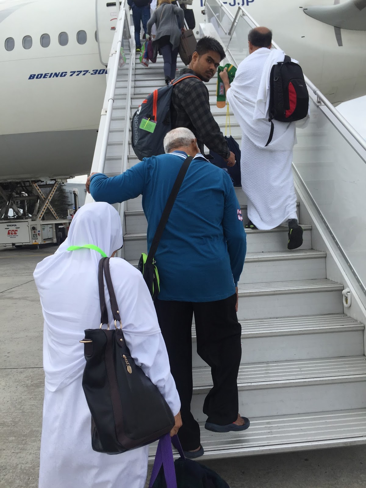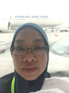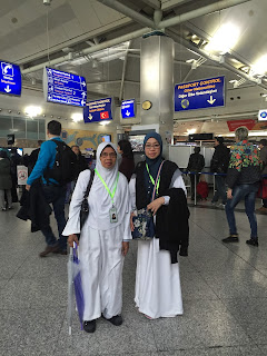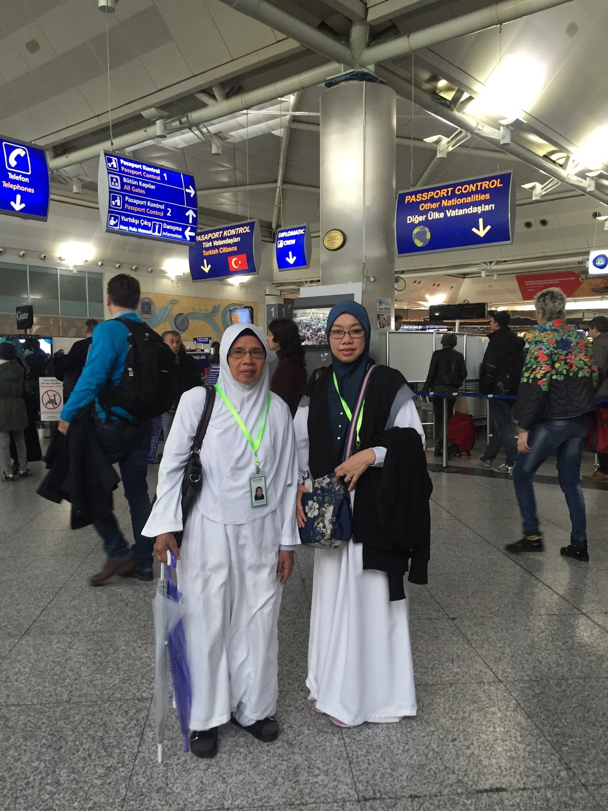 Setelah kami breakfast dan checkout Hotel Hilton Garden Inn, Istanbul, kami berkumpul untuk ke airport Istanbul. Kami akan terus terbang ke Jeddah, maka semua diminta untuk berpakaian ihram terus. Kaum wanita senang sikit berbanding pakaian ihram orang lelaki. Org lelaki diminta tukar pakaian di airport Istanbul.