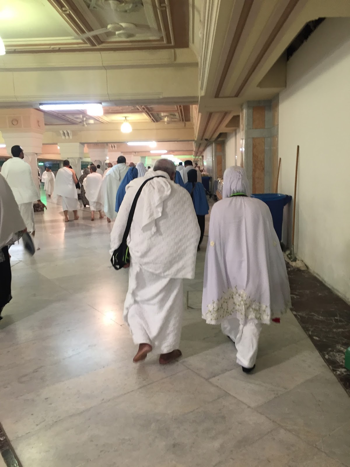 Tempat sa'ie dari Saffa dan Marwah. Hanya sedikit sahaja bukit Saffa dan marwah yang boleh dilihat sekarang ni.. Selesai bersa'ie, kami pun bertahulul. Encik suami kata, kita tunggu di sini sahajala sehingga subuh di sini... jadi kami berehat di satu sehingga subuh.