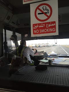 Kami menaiki bas untuk ke terminal. Yang kelakarnya entah mengapa pemandu bas yang membawa kami dari kapalterbang ke terminal tiba-tiba memberhentikan bas di tepi jalan dan duduk saja2 main telefon. Sehingga ada penumpang Arab yang marah2 baru dia jalan balik.. tapi slow2 dan bawa kami pusing2 merata. Gabra kami dibuatnya. Ingatkan nak kena kdnap... huhu..