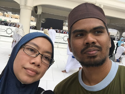 Muka kami suami isteri setelah berjaya mendapat apa yang kami hajati. Kami solat sunat tawaf di kawasan belakang kami tu di pagar berwarna hijau. Syukur Allah makbulkan hajat kami. Macam tak percaya tapi itulah yang kami dapat... bagi kami satu keajaiban...