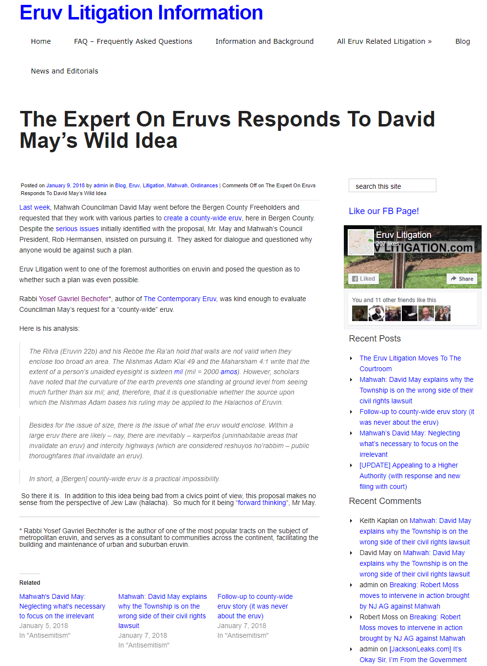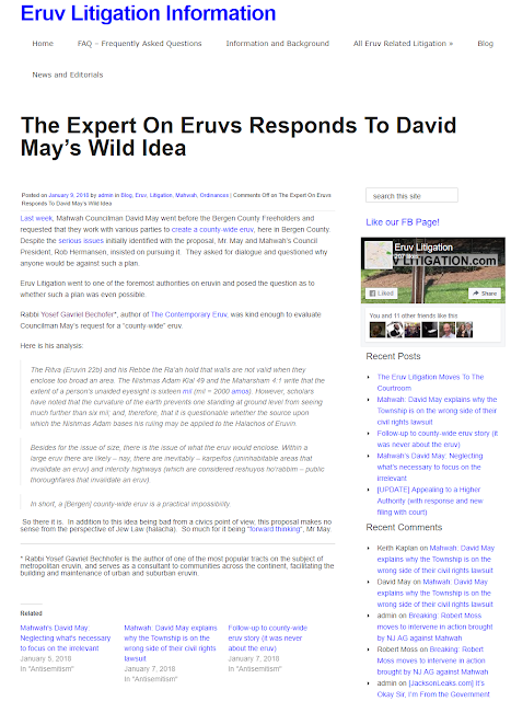The Expert On Eruvs Responds To David May's Wild Idea | Eruv Litigation Information