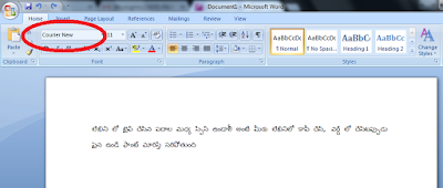 పైన పేస్ట్ నే మార్క్ చేసి, ఆంగ్ల ఫాంట్ అయిన కొరియర్ న్యూ Courier New  లోకి మారిస్తే పదాల మధ్యన వచ్చిన దూరం తేడాని మీరే స్పష్టముగా గమనించవచ్చు.