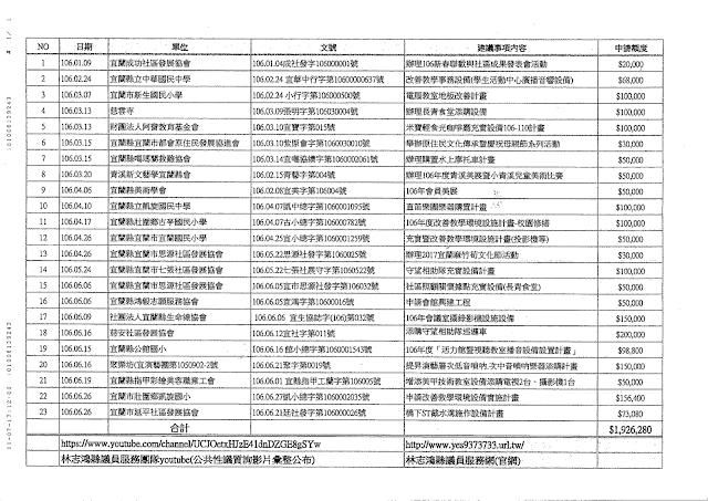 宜蘭縣議員2017上半年問政表現觀察報告~系列三~透明度表現觀察報告《公布議員助理名單有那麼難嗎?》 文/社團法人宜蘭縣公民監督聯盟 公布議員助理名單,陽光政治的基礎 古有明訓『三個臭皮匠,勝過一位諸葛亮』,有助理幫忙,議員表現會更好,但如果議員將國家補助議員聘助理的費用,花在請自己妻子當辦公室主任,用自己的小孩當助理,如果自己家人真有按時工作,那倒也無妨。不過,全用自己家人、父母、妻兒當助理,只是議員用來領取助理費的方法,那道德瑕疵不言可喻。此一結果造成服務只是議員一人,又要跑紅白帖婚喪喜慶,又要開會,議會開議在場率又不高,服務處總是門窗緊閉,電話也沒人接,那也不足為奇了。 更糟糕的是,利用人頭來虛報,或高申報低領薪之模式詐領助理費,例如桃園市議員張肇良涉嫌詐領千萬元助理費,桃檢依貪污罪嫌起訴;新竹縣議員陳栢維涉詐領300萬助理費被押;台南市前議員楊麗玉涉詐領助理費668萬元被起訴;前台北市議員秦儷舫涉詐助理費移送北檢複訊;這在在都是枉費選民的付託,但選民卻全然不得而知。 月領8萬元助理費 就應讓助理發揮功能 宜督盟為促進議會更透明化,避免議員遊走於法律邊緣,促進青年有機會參與助理工作,並進一步傳承政治工作,要求宜蘭縣議會議員應公布議員助理名單,一來每位議員依法可聘用2-4名助理,每月最多可支領8萬元,加上年終獎金,全年有108萬元之多。二來助理可以協助議員行程規劃、法案研究、為民服務等工作,讓議員在開議期間能全心在議場內為縣民福祉把關。甚至像黃定和議員、薛呈懿議員聘用助理將其議會質詢影片剪輯放在youtube,並透過LINE群組、FB粉絲專頁分享,藉以和選民互動溝通,這都是值得肯定的作法。 宜督盟對願意公布助理名單之議員表示肯定 就本期議會觀察資料,有陳漢鍾議員、薛呈懿議員、林志鴻議員、蔡文益議員願意公布助理名單,本聯盟就此給予高度肯定,其中陳漢鍾議員助理的表現,可真為陳議員表現大大加分,看到議員質詢內容皆有助理用心蒐集資料提供議員參考的價值。而全國最年輕的薛呈懿議員,助理跟議員一樣年輕化,開啟一群年輕人更關心政治議題,更有空間表達年輕人的看法,都值得肯定。就宜督盟的觀察黃定和議員、劉添梧議員、黃素琴議員等等…也都有年輕助理,表現也很好,不過不知為何沒有提供完整名單。整體而言,議員們多少都有請助理,只是足不足額或適不適合,唯一可肯定的是申請足額的錢。 雖然宜蘭縣議會已為全國較優的議會,但未公布助理名單不是現代議員該有的行為表現,再次提醒其他不願公布助理名單的議員,請主動公布助理名單以昭公信,本聯盟再次強調,對不願公布助理名單的議員,助理費用108萬元的公帑,視同議員一人領取,一點都不為過。 延伸閱讀 宜蘭縣議員2017上半年問政表現觀察報告~系列四~透明度表現觀察報告《公布議員配合/建議款》 文/社團法人宜蘭縣公民監督聯盟 推動廢除議員配合/建議款,落實責任政治 台北市在陳水扁擔任市長時廢止議員地方工程配合款,繼任的馬英九及郝龍斌亦選擇不恢復;合併升格前的台南,台南縣、台南市議員每年都有500萬以上的配合款,但新市長上任後,堅持《預算法》並無配合款規定,不應編列每一位議員固定額度的配合款,並強調議員只有預算建議權。高雄市亦於2015年取消議員配合款。 責任政治是民主政治的一環,議員對縣府的關係該是發揮監督功能,不因私利所誘,才能保障縣民權益,握有行政權的縣府與立法權的議員不可混為一談。此外,議員配合款常被拿來作人情,在選舉時連任議員會因此佔有優勢,造成不公平競爭。 選前簽署廢除議員配合/建議款,選後依然建議補助? 在2014年11月由公民監督國會聯盟及宜蘭縣公民監督聯盟等團體邀請議員參選人簽署「議會改革承諾書」,承諾書中其中一項為「推動廢除議員配合/建議款,並且不支用任何配合款項」的承諾,宜蘭縣有簽署但未當選者為張曜顯、張建成、王明輝、莊淑如,當選的議員為孫湯玉惠、林志鴻(未簽署承諾推動廢除議員配合/建議款,並且不支用任何配合款項,並於今(2017)年7月11日主動提供本聯盟2017年1-6月建議案明細)、黃素琴、陳漢鍾、林岳賢、薛呈懿。(2014九合一選舉議會改革承諾簽署報告,http://www.ccw.org.tw/p/22006) 請問這些當選議員的簽署者迄今是否推動廢除議員配合/建議款?又是否不支用任何配合款項? 桃園市政府做得到,宜蘭縣政府為何做不到? 查閱宜蘭縣政府主計處網站可見「對民間團體補捐助及議員建議案」(http://bgacst.e-land.gov.tw/News.aspx?n=70CDE68772BADADF&sms=6846E7E9DD40C190)中,公布宜蘭縣政府歷年來各季對「民間團體補捐助」內容,但檔案卻未能辨別是否為議員配合/建議款,再看看桃園市政府網站公布該市2016年度的「議員建議款」的使用情形,明確載明每位議員建議項目、金額等明細。(桃園市政府105年度對議員所提地方建設建議事項處理明細,https://goo.gl/X1VzY9) 綜上,選民不是選舉那天才是頭家,因此本聯盟要求: 1.未廢除議員配合/建議款前,縣府公布議員配合/建議款資訊,公開讓公民檢驗。 2.最終,縣府、議會廢除議員配合/建議款。 延伸閱讀 心有蘭陽、力抗空汙 文/宜蘭縣環境保護聯盟 「空汙在我家!」座談會 環保局長率隊參與 由台灣環境保護聯盟主辦、宜蘭縣環境保護聯盟承辦的「空汙在我家!