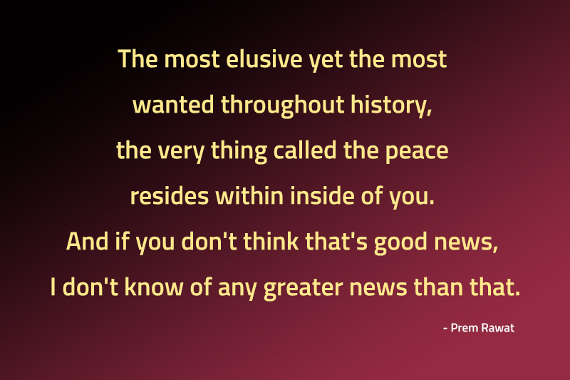 Prem Rawat is a man of singular vision and clarity. He is a teacher with a core message: the peace people are looking for is already within.