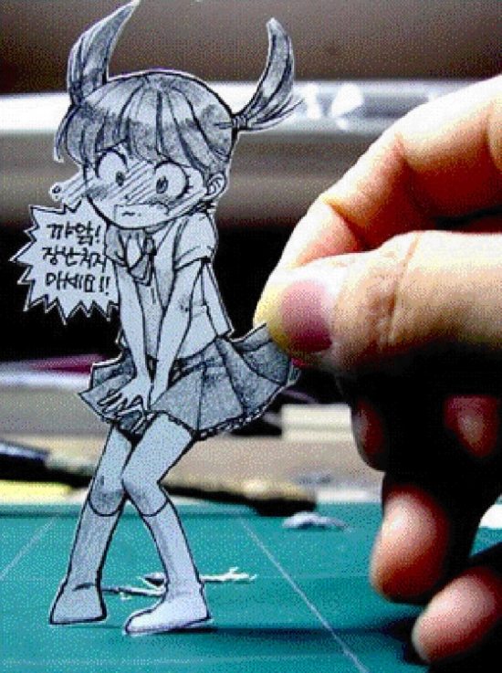 فقد قاموا برسم شخصيات كرتونية على الورق و قصوها ووضعوها في مشاهد حية مختلفة.