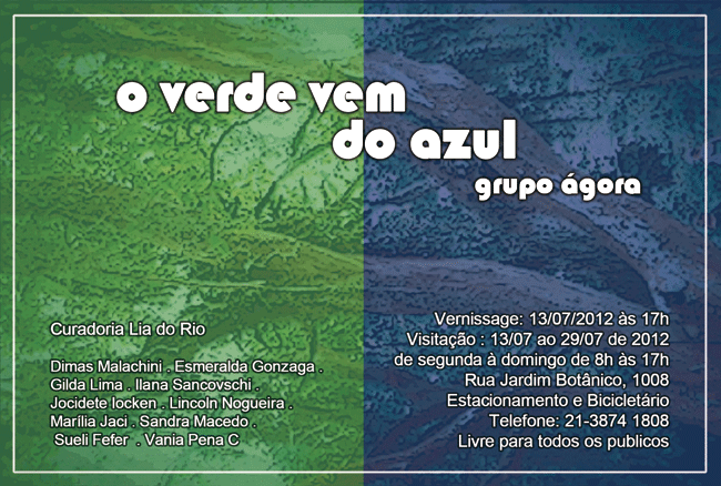 ... estará expondo no Jardim Botânico, situado à Rua Jardim Botânico, 1008, apartir do vernissage que acontecerá no dia 13 de julho às 17 h, podendo ser visitada até o dia 29 de julho de 2012, de segunda a domingo das 8 h às 17 h.