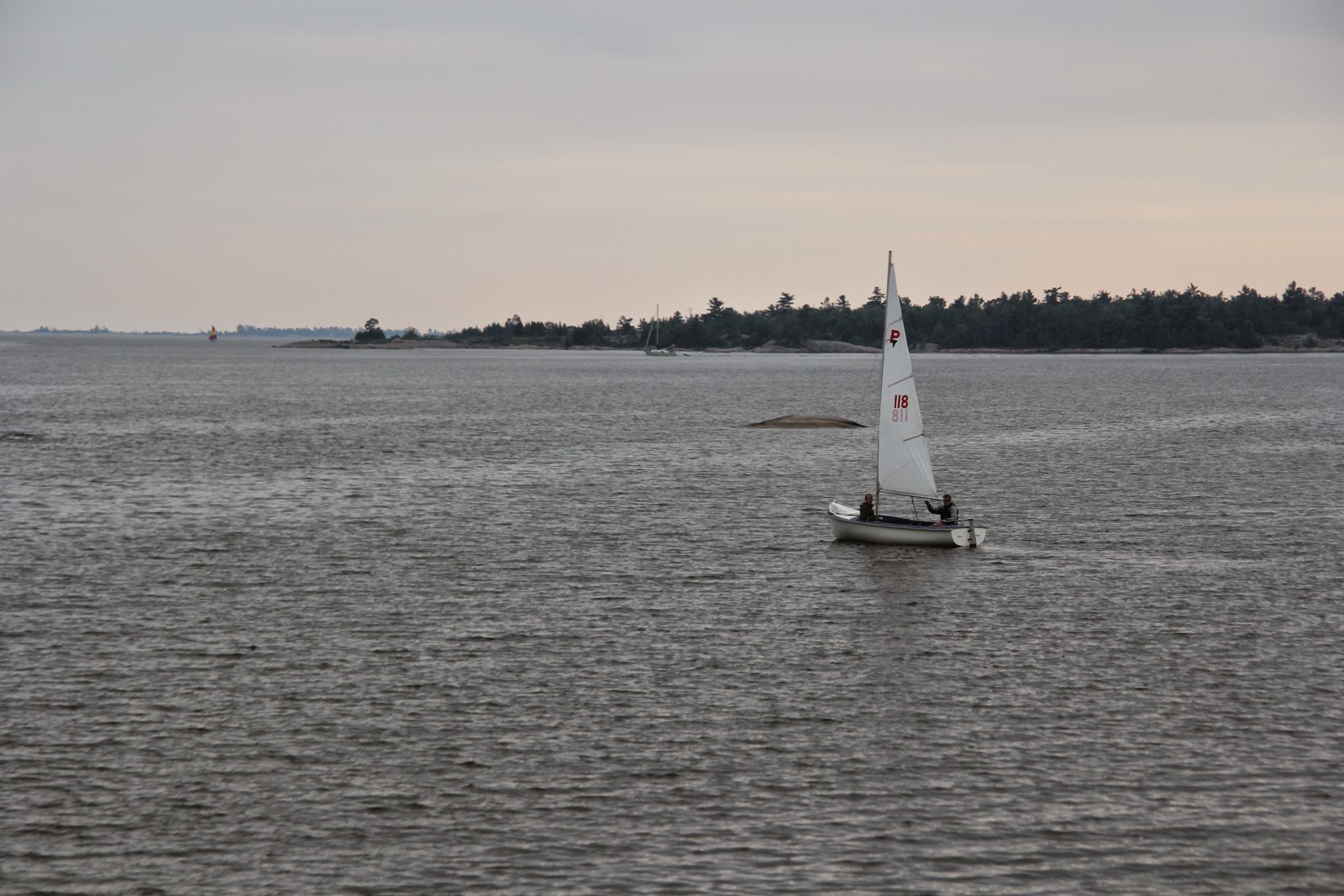 From Montreal we turned left and headed west. My friend Thad and his wife Krista invited us for a week at Krista's family place right on the water of Georgian Bay, which is a few hours north of Toronto. We had an incredibly fun week swimming, running, sailing, kayaking, picking wild blueberries, going for boat rides, scuba diving, playing volleyball, badminton, soccer volleyball, and lots of games, plus eating tons of good food and hanging out with Krista and her family. Ginger, needless to say, had the best time of all - swimming all day until she could hardly move at night.