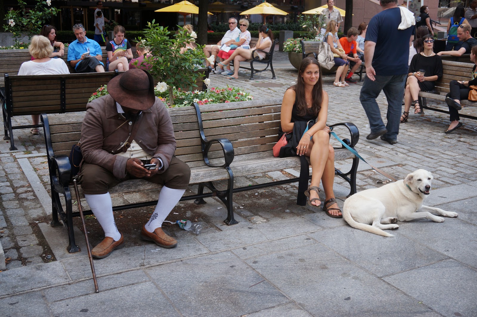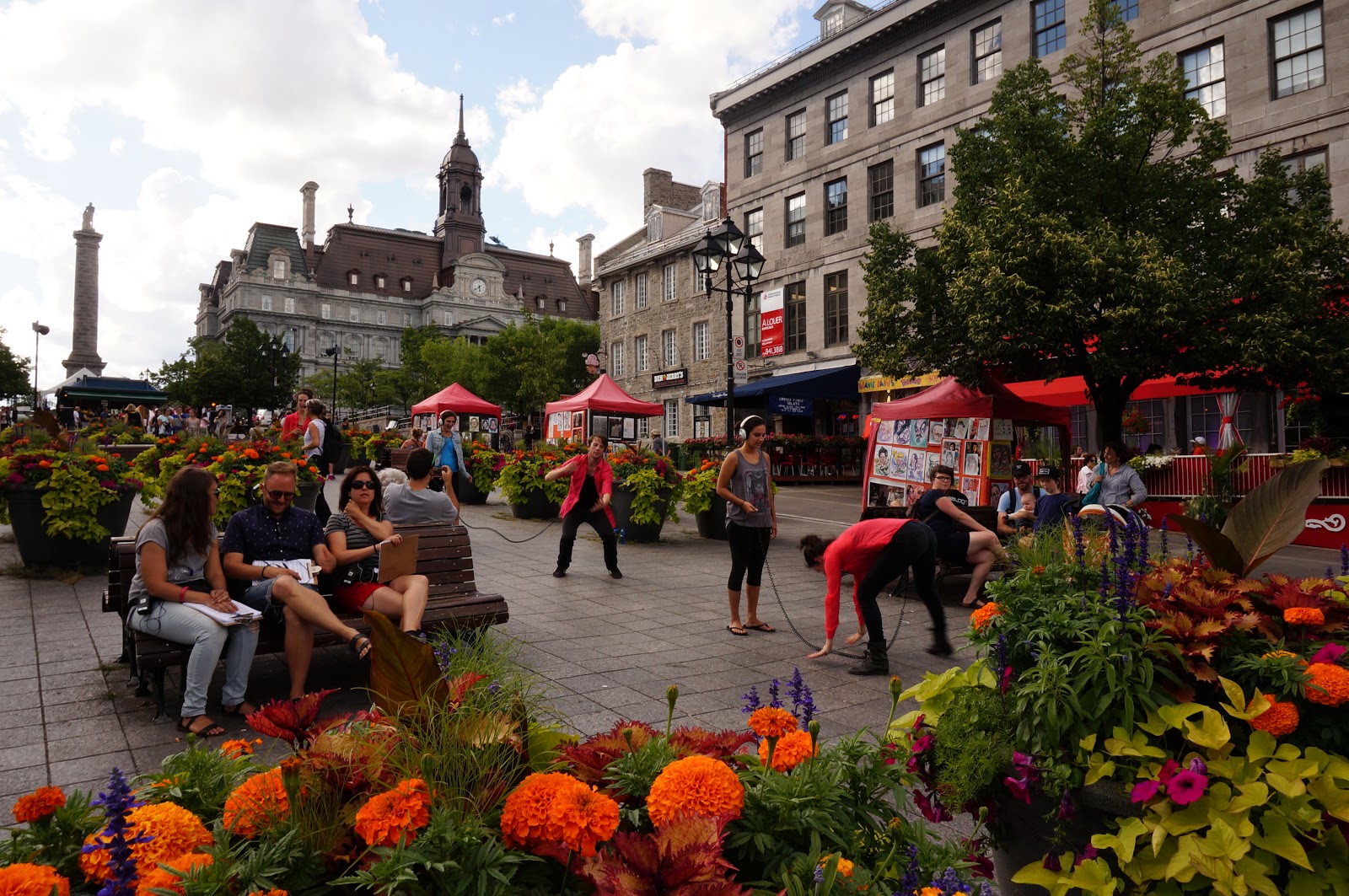 Old town Montreal had lots going on. These people in the red jackets were doing some kind of weird interpretive dance for the person wearing the headphones. Because art. |