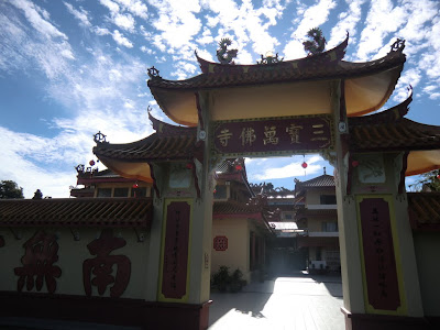 All told I think we spent 3 days in Cameron Highlands, and for the life of me I have no idea what we did. All I remember is our very nice hostel, Gerard's Place, and eating. One thing I know we did was the "Countryside Tour." For a mere 35 ringgit each - about $12, we got a half-day tour in a nice air-conditioned van with about 6 different stops and an English-speaking guide. Can't beat that. First stop was a nice Chinese temple, though nothing we haven't seen before.