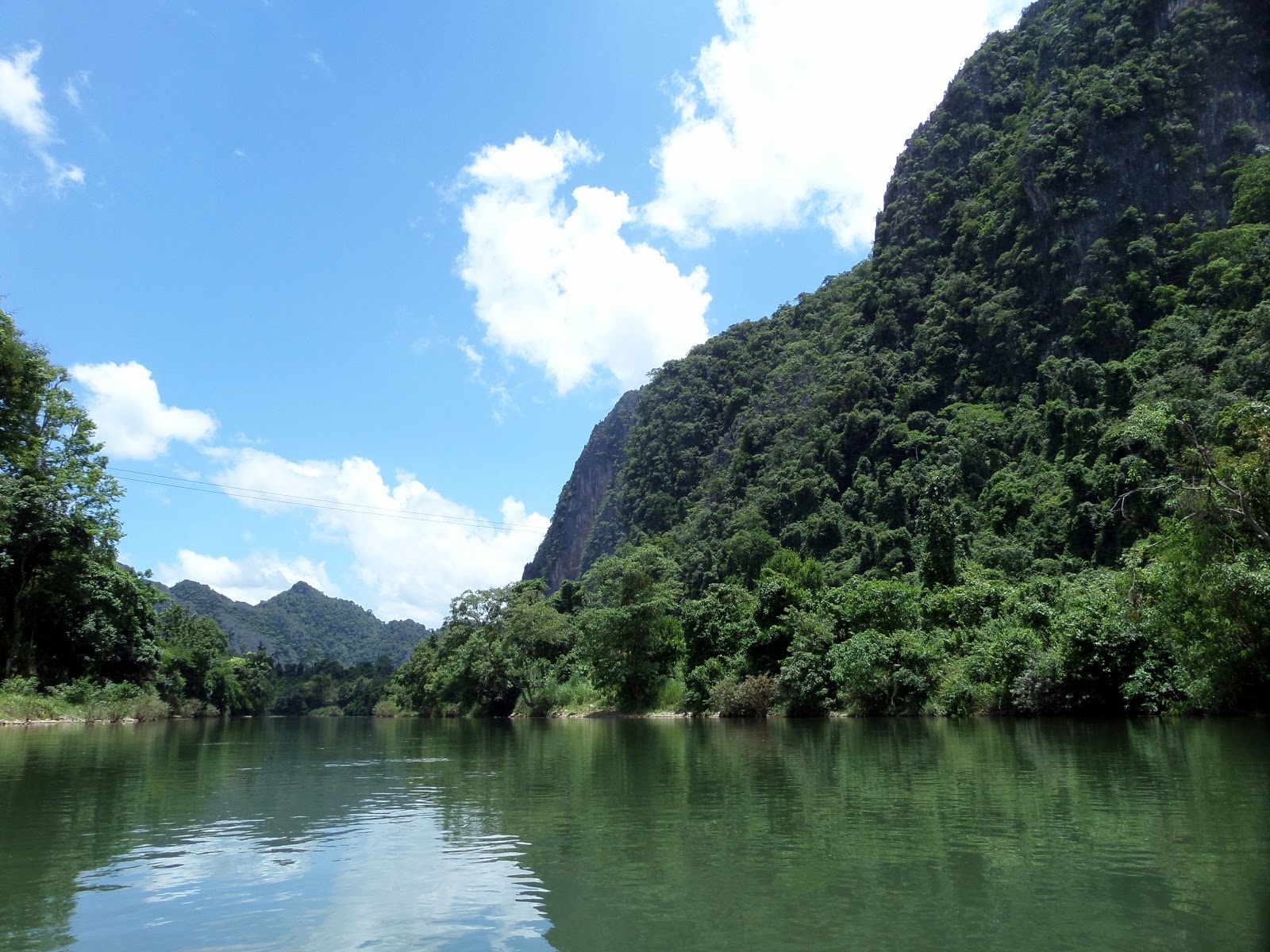 with huge limestone mountains just on the opposite side of the Nam Song river.