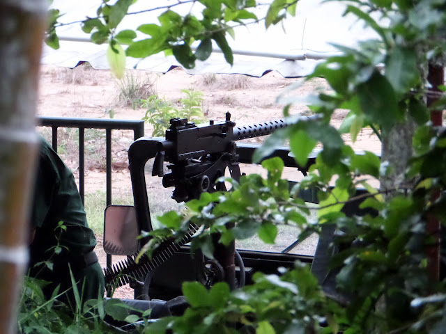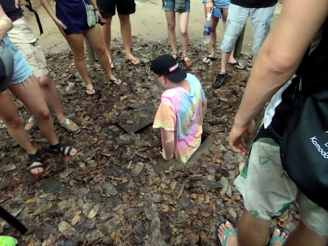 A favorite tour for visitors to Saigon is the Cu Chi tunnels, which is a vast network of tunnels in the jungle used by the Viet Cong to hide from the Americans during the war. For $5 each we got tour guide and an air-conditioned bus ride out to the site, though the entrance ticket was another $6 each. Oh, we also got to stop at a handicap center! We were lucky to get "Mr. Bean" as our guide for the day. Mr. Bean is a Vietnamese man from Saigon who fought in the war. I guess he has American citizenship somehow because he said he fought in the US Navy. Anyways, it was very refreshing to hear a different side of the story, the "real story" as he put it. Throughout the day Mr. Bean gave us his story, and it wasn't really a happy one. I can't remember all of it, but do remember that he was engaged at a young age but his fiance was killed during a surprise attack by the North during the Vietnamese new year, known as the Tet Offensive. Mr. Bean actually fought at the Cu Chi tunnels, so he could give us a first-hand account at how terrifying it must have been to try to fight the Viet Cong, who could have been anyone from a local village, who could sit for hours in a squatting position and wait to ambush American troops, who set booby traps all through the forest, or who could pop out of a hole or from behind a tree at any time. Luckily Mr. Bean brought a very entertaining personality to liven up the otherwise depressing tour, often breaking out into song or telling funny jokes (mostly about fat Westerners). He must have been a good guy to have around during the war.
