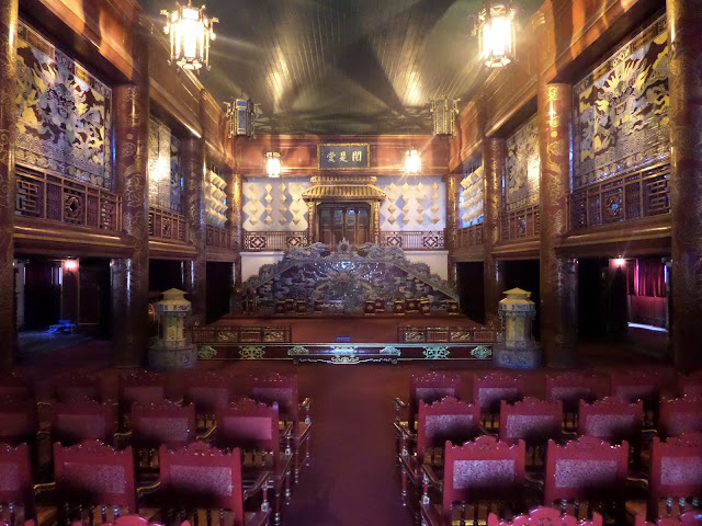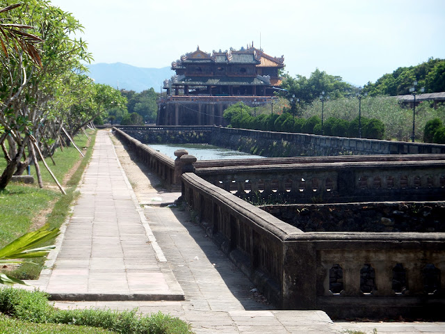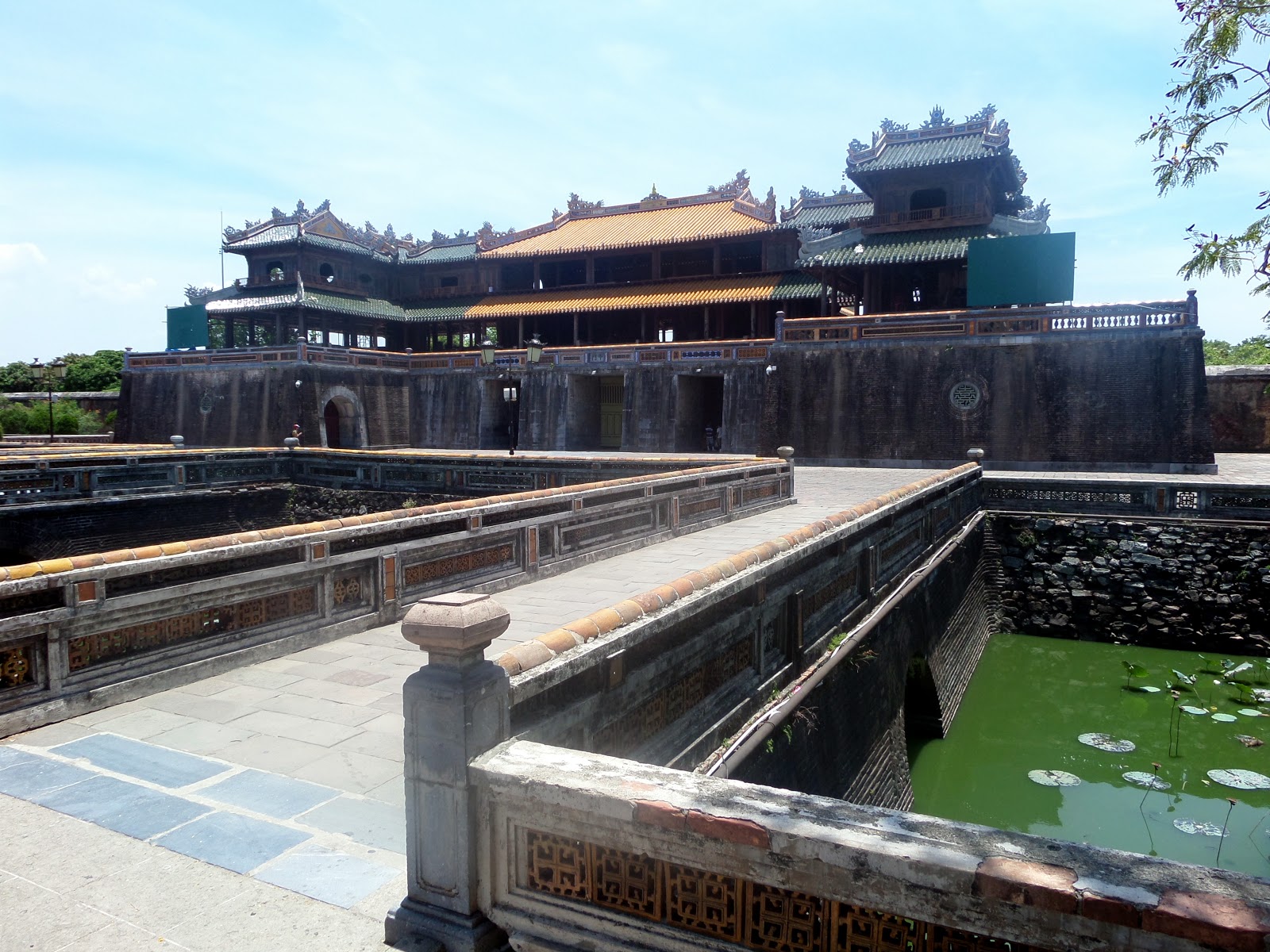 th century until 1802 when they took control of the entire country. Hue remained Vietnam’s capital until 1945 when the country was split in two. It was bombed pretty heavily during the war, but it’s historical monuments have slowly been restored to their former glory, or close to it. The main attraction is the Citadel. Similar to the forbidden city in Beijing, the Citadel was the imperial seat of the government and is a huge complex of temples, pavilions, moats, and now shops, museums and galleries. There was even a “forbidden” Purple Palace where only the emperor and his servants were allowed, but there’s very little left of that today. Instead you can just wander around, admire some of the buildings, read a little of the history, and try not to pass out from the heat.