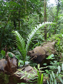 ADRA owns a plot of land in the jungle of Caué District. It was bought many years ago to be a sort of experimental research farm, but has lain dormant for several years now. We're still holding onto it because we know that one of these days, we'll figure out what to do with it. But for the moment, it just sits there, slowly getting overgrown and maturing into a full rainforest. We have a guard who lives there and keeps an eye out on the property, but we were starting to get reports of illegal logging and harvesting on our land. So one day in February, I went there with some of our staff (who already know the lay of the land), and we hiked the perimeter of the plot, hacking our way with machetes part of the time, walking on dirt roads some of the time, and sweating buckets the whole time! It is absolutely beautiful territory, complete with a scenic cliff overlook, waterfalls, and black cobras all around. Thankfully on our hike, we didn't come across any cobras, but we did come across evidence of illegal logging and fruit harvesting. Either our guard is not on duty much of the time, he's too old to hear the chainsaws, or he's complicit with the activities. Not sure what we're going to do about it, as guards willing to live out there in the lonely woods are hard to come by. Perhaps we'll turn our land into an ecotourism trekking ground and make some money off of it that way -- without having to introduce any kind of labor-intensive industry!