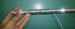 Wind it around a base tube (I have used a 'Dhandhiya' stick here, any cylindrical shape can be used, keep in mind the circumference of it and choose accordingly, to get big curls choose large diameter ones and for small flower petals you can even use crochet needles, in fact i have used crochet needles to wind coil for the leaves i made use 22 gauge wire)