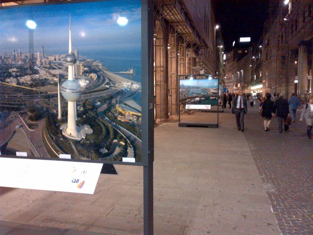 A reader who’s currently studying in Italy emailed me some photos of an exhibition called Discover Kuwait that’s currently taking place in the streets of Milan. According to him they’re there for a week promoting Kuwaiti culture with pictures, information and even with music and dance. Below are some pictures he took and you can find out more by visiting the Discover Kuwait website [Here]